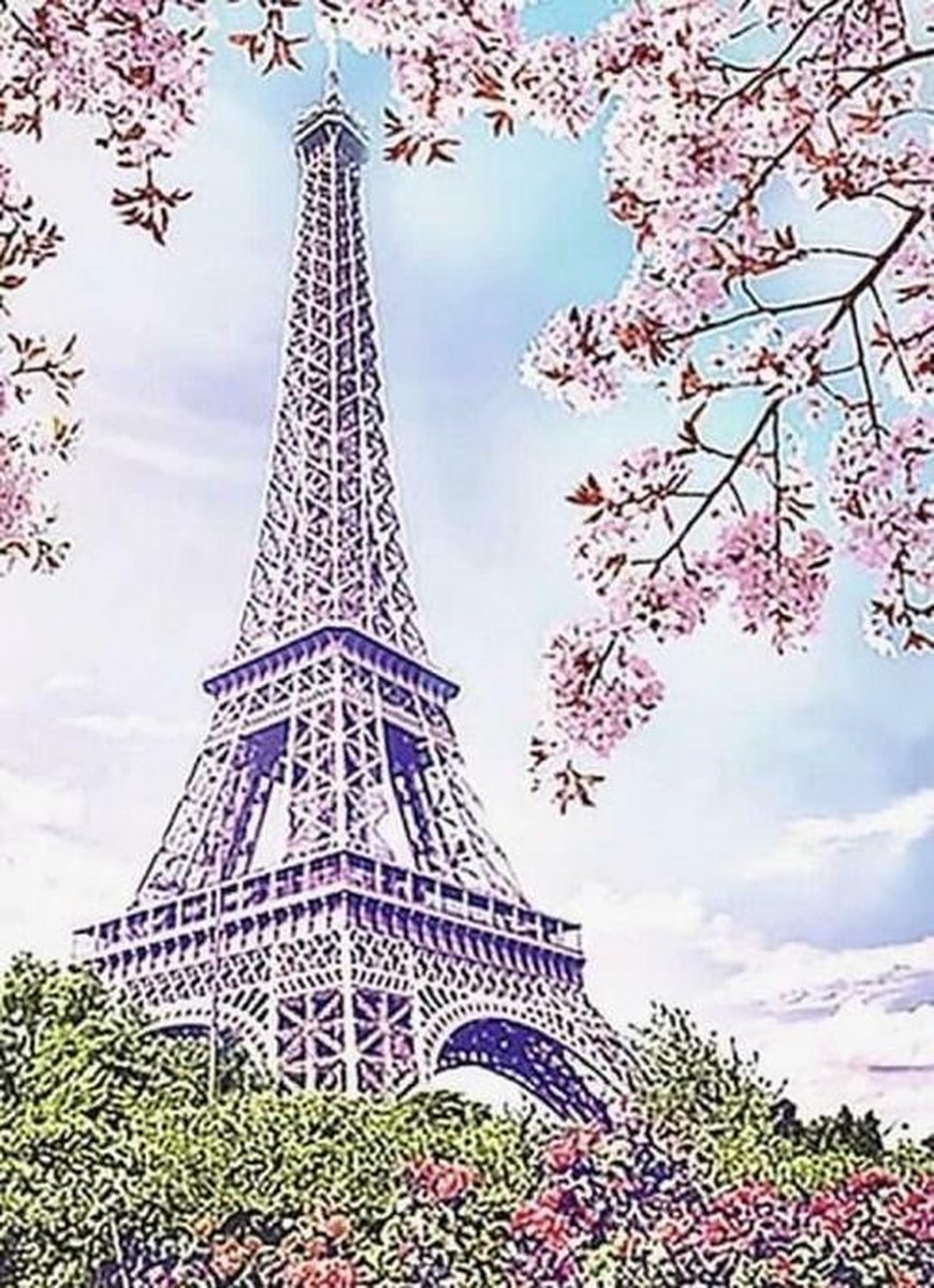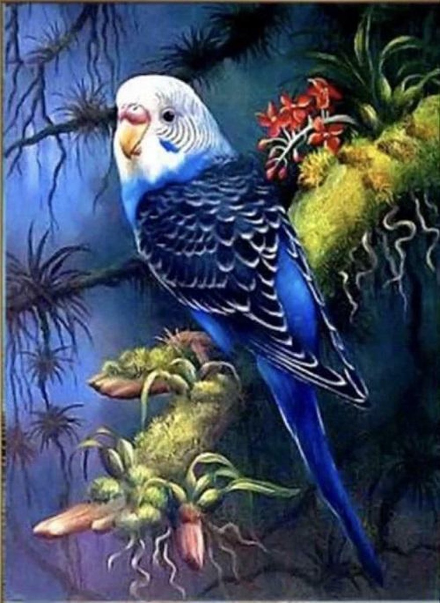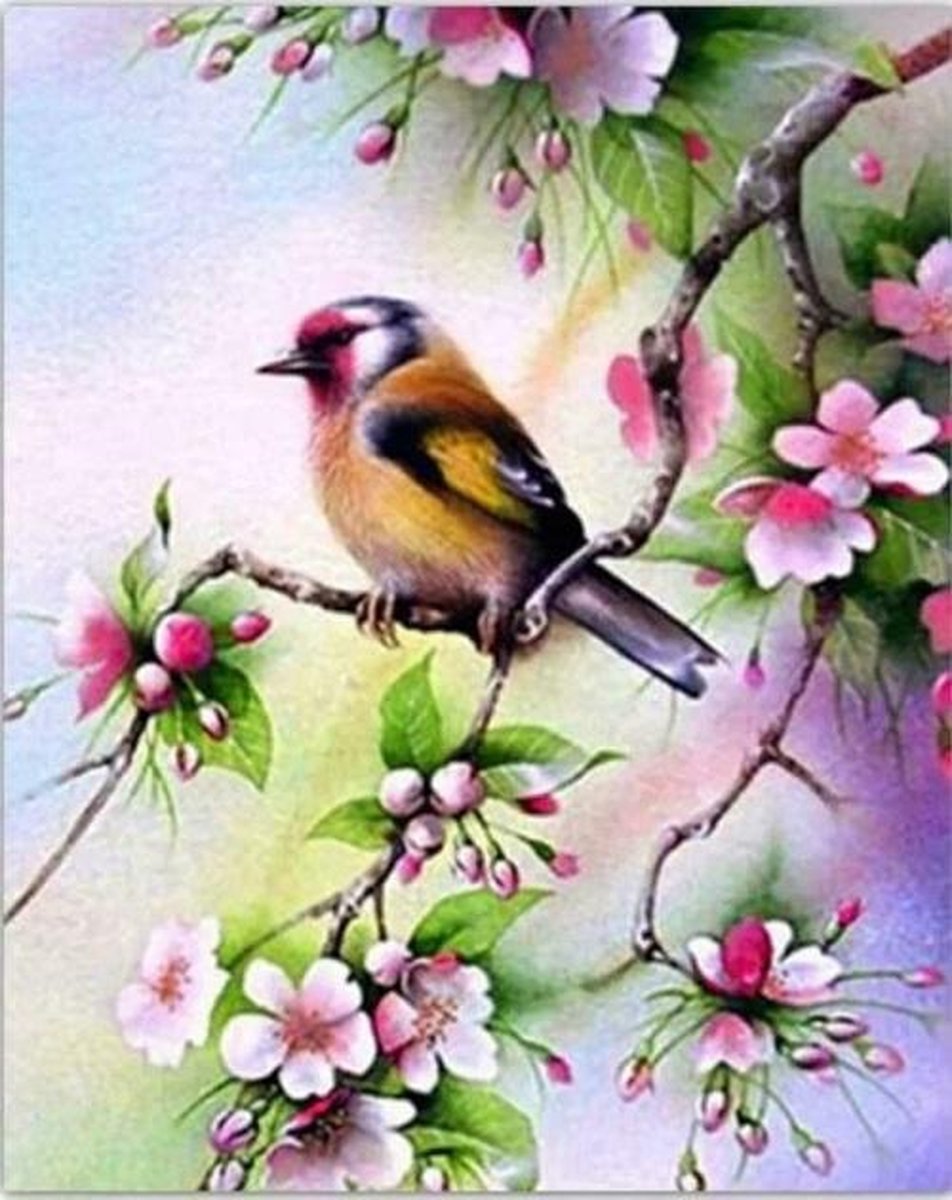 Diamond painting 40 x 50 cm vogel op tak ronde steentjes volledige bedrukking puttertje - japanse roos - bloemen - takken - achtergrond - direct leverbaar