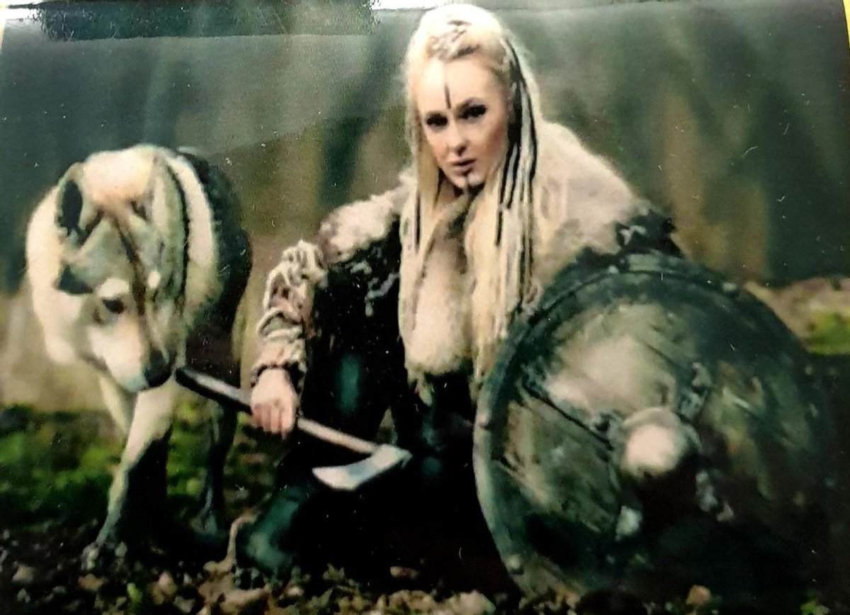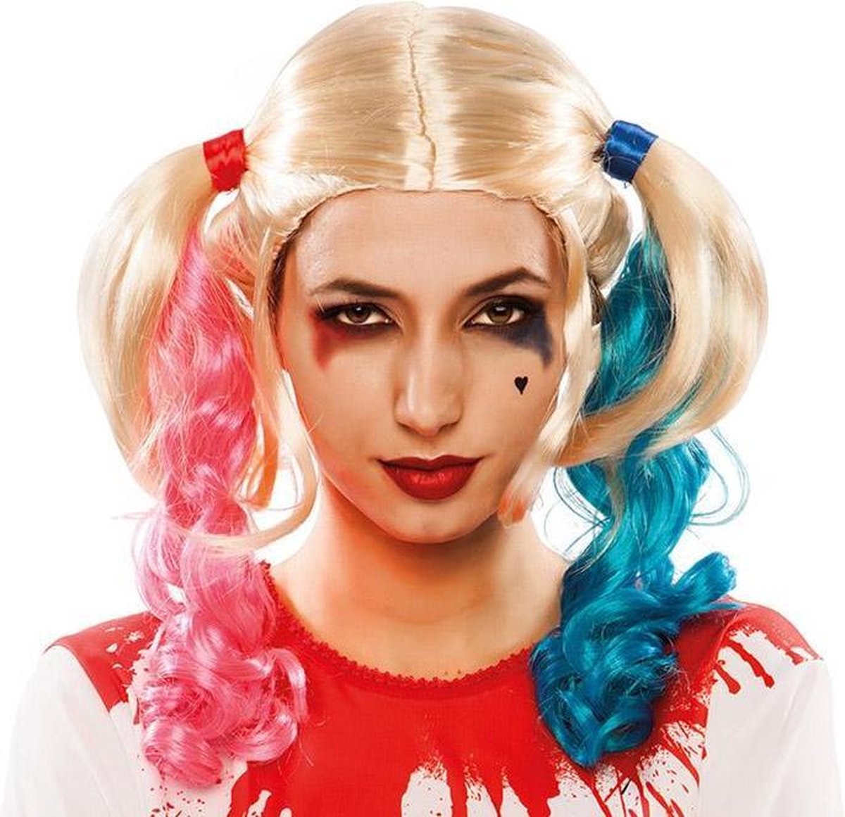 Pruik Blue Valentine Glam Doll Blauw/Rood