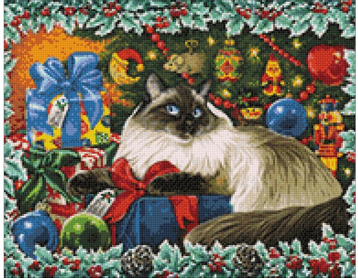 Diamond Painting pakket – ‘Grumpy Cat’ op een Blauwe Deken- 25x20 cm – Volledige bedekking - Vierkante steentjes – Inclusief tools en gratis diamond painting sorteerdoos (28 vakjes). Ideaal voor beginners, kinderen en volwassenen. ‘Grumpy Cat’ on a B