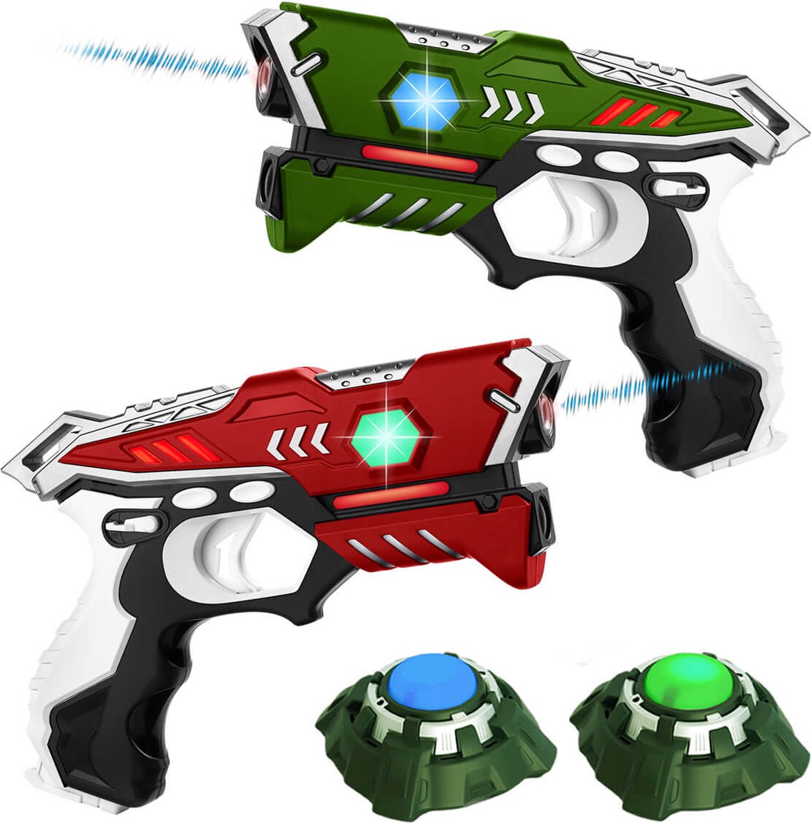 VATOS Oplaadbare Laser Tag Set - Met Projector LED - 2 Spelers Laserguns - 4 Wapenmodi - Gezinsvriendelijk Buiten Speelgoed Lasergame Set voor Kinderen 6+