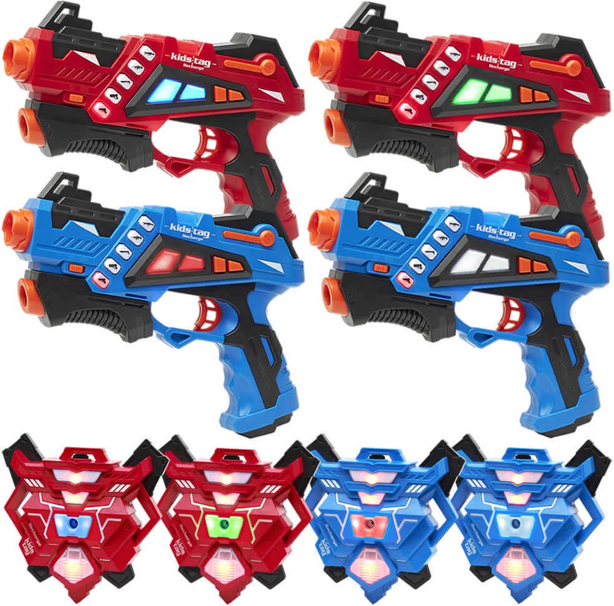 Oplaadbare Laser Tag Geweren Set voor 4 Spelers met Oplaadstation - Infrarood Laser Geweren zonder Vesten - Gegevensweergave voor Kinderen, Tieners en Volwassenen - Ideaal voor Groepsactiviteiten en Familiegames
