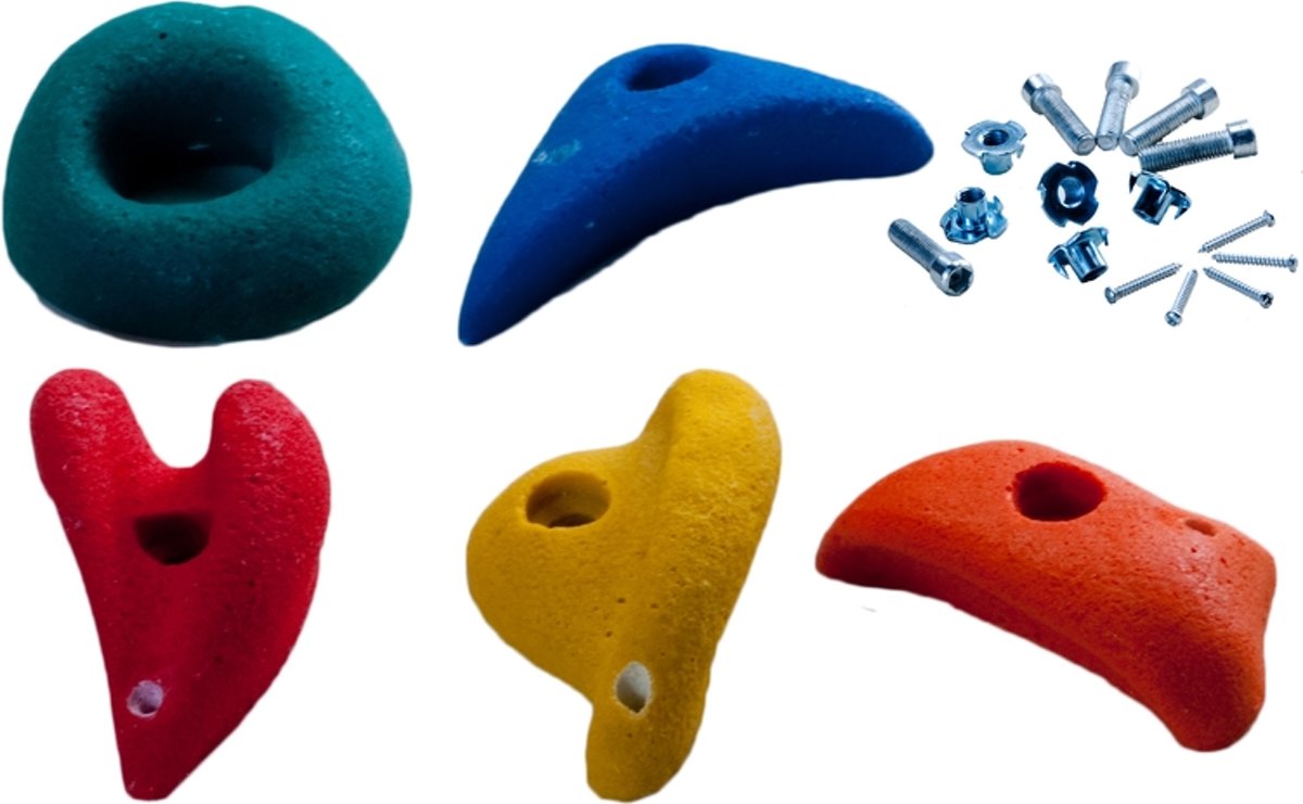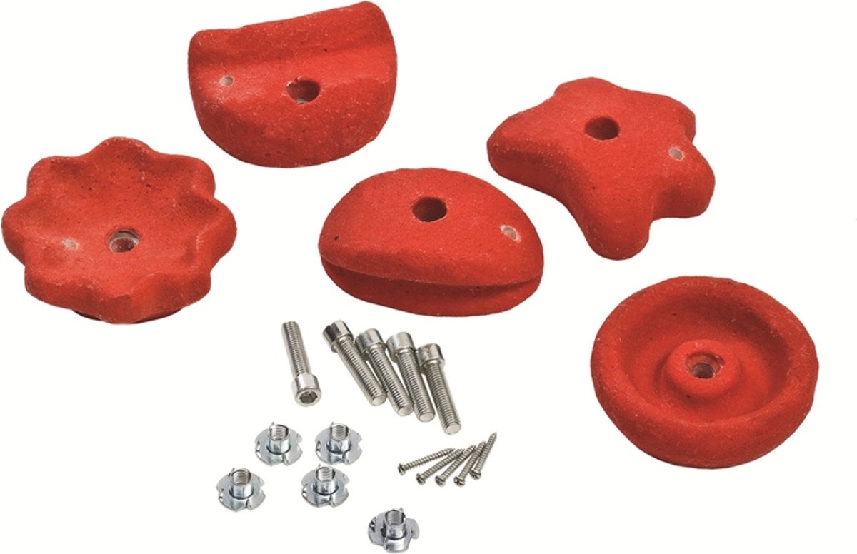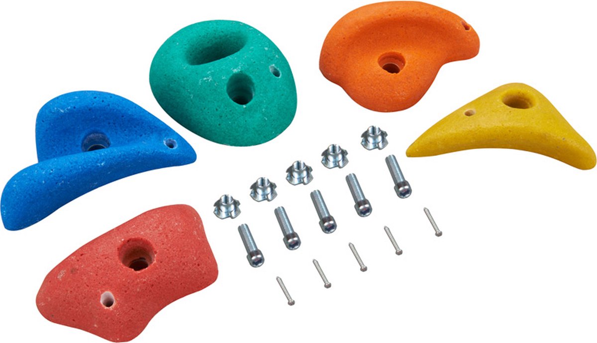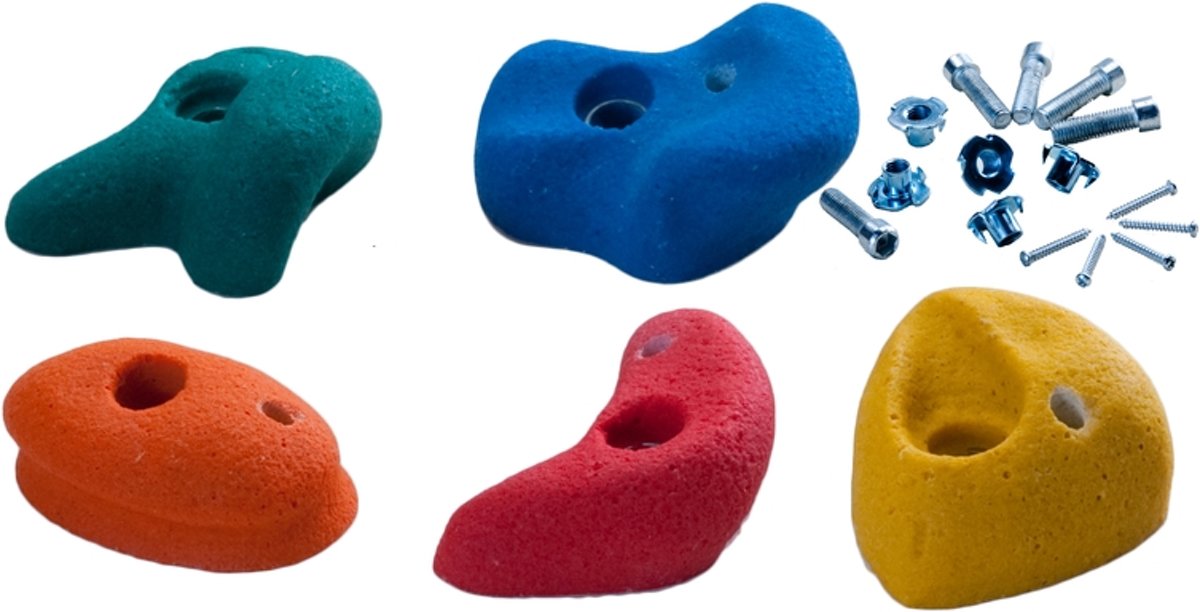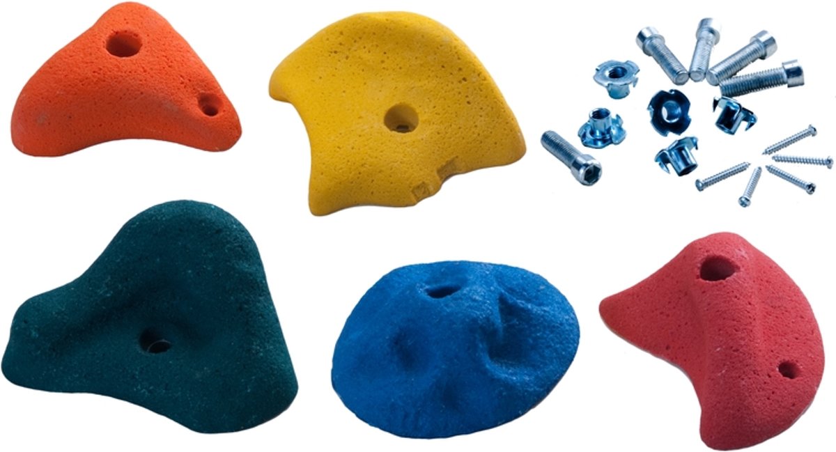 Klimstenen set groot 5 stuks gekleurd - voor klimwand of houten speeltoestellen - Klimgrepen