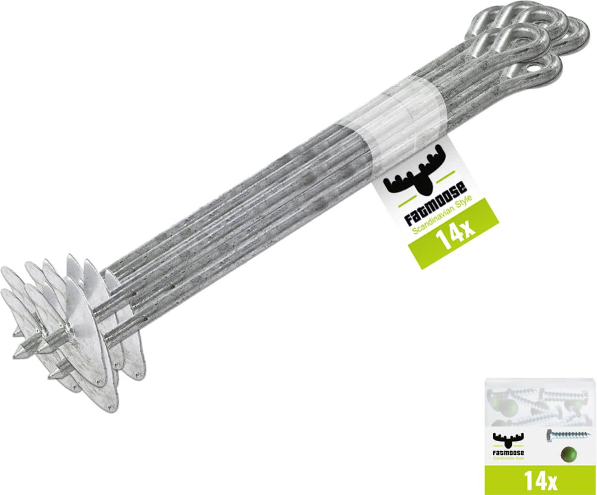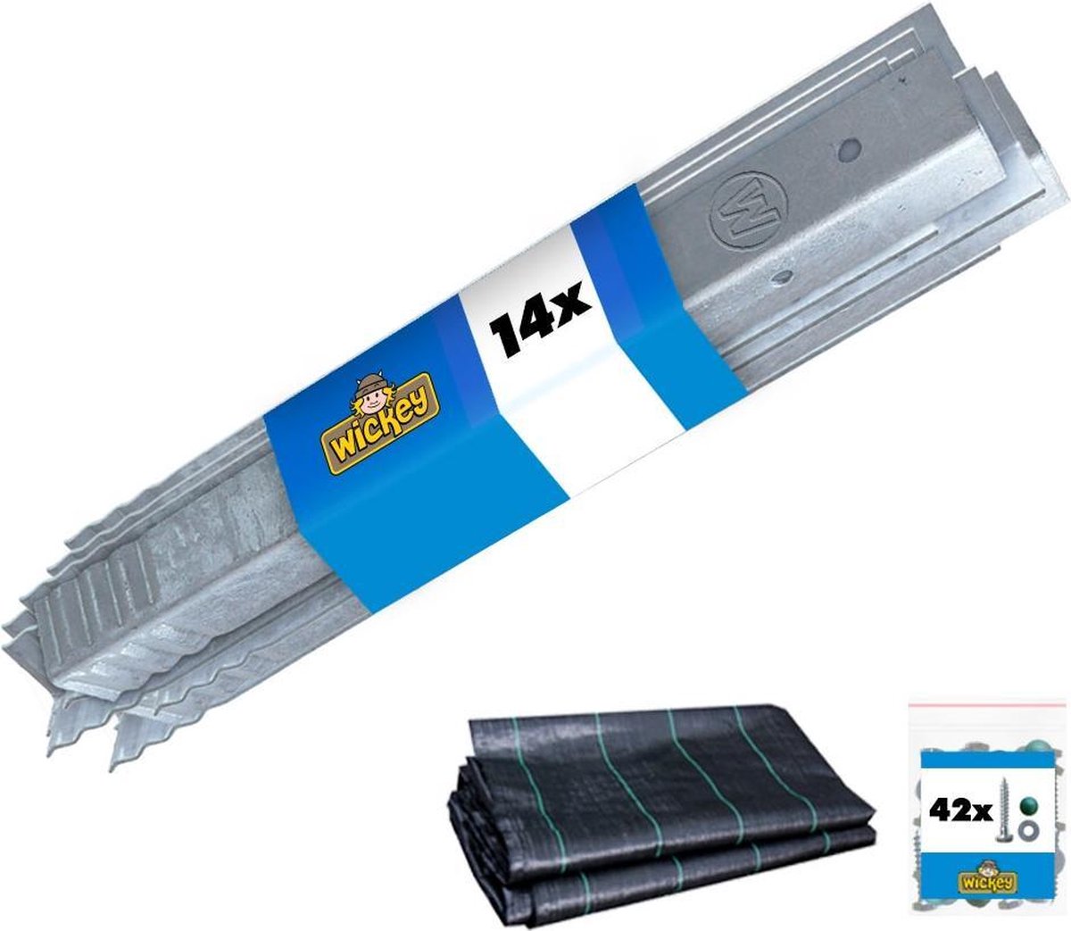 WICKEY Grondanker paalhouder paalanker set a 14 stuks met anti-worteldoek voor speeltoren & schommel, anker, hoekanker voor speeltoestel & schutting