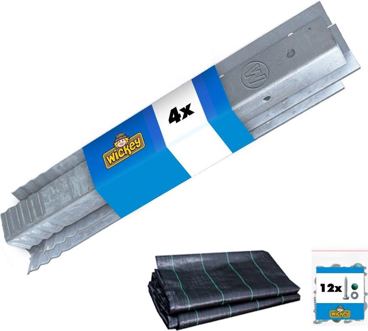 WICKEY Grondanker paalhouder paalanker set a 4 stuks met anti-worteldoek voor speeltoren & schommel, anker, hoekanker voor speeltoestel & schutting
