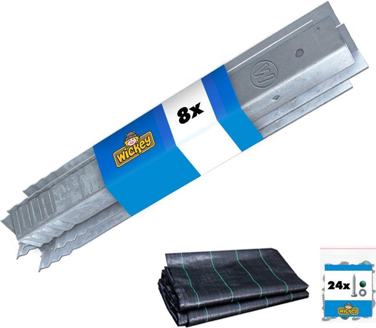 WICKEY Grondanker paalhouder paalanker set a 8 stuks met anti-worteldoek voor speeltoren & schommel, anker, hoekanker voor speeltoestel & schutting