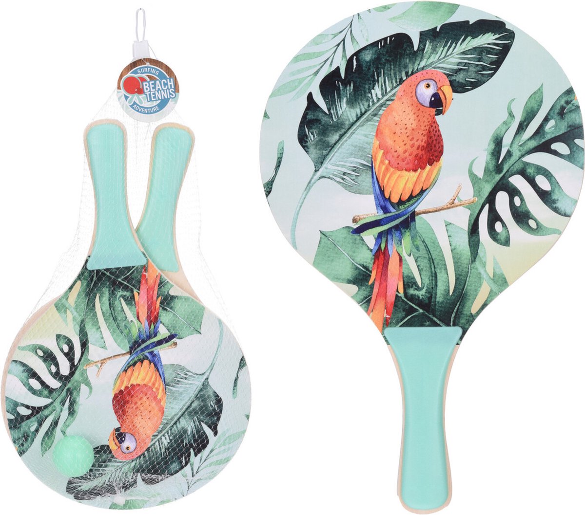 | Inhoud | Strandsporten beachball set met tropische print oranje handvat 41 cm |