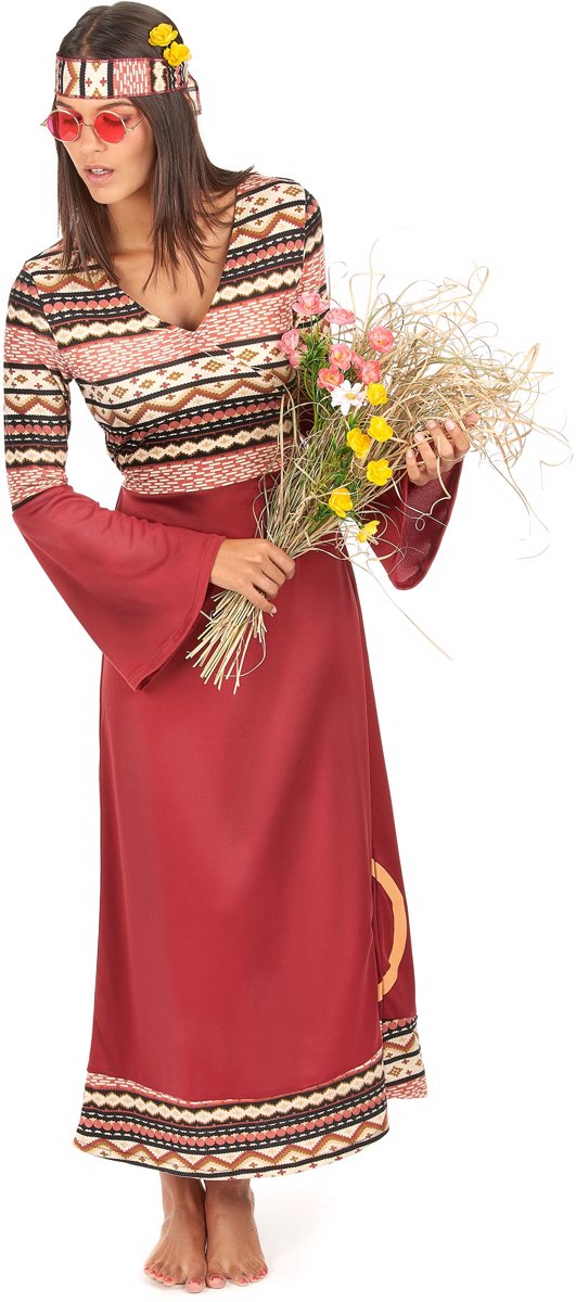 - Bordeaux rood hippie kostuum voor vrouwen