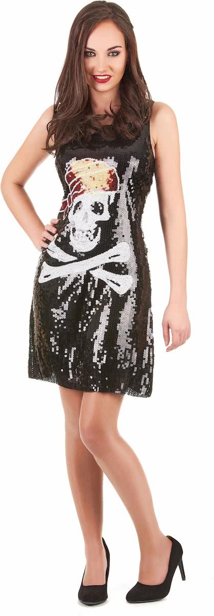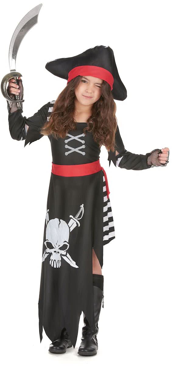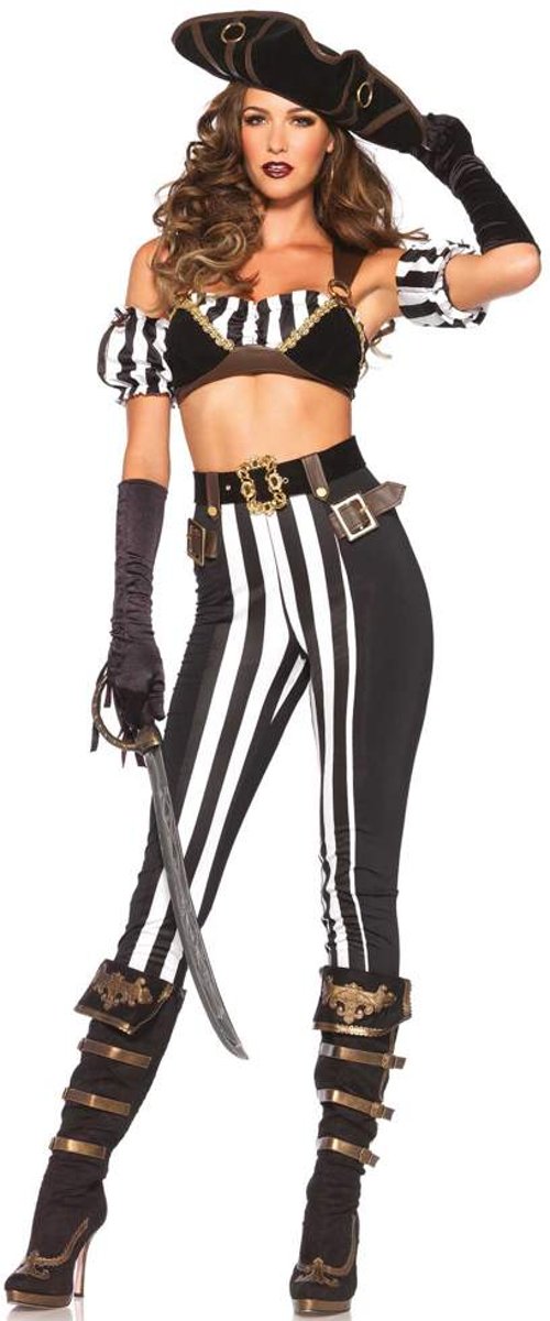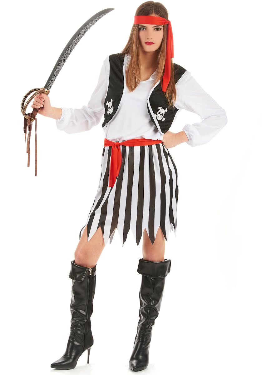 - Zwart rood en goudkleurig piratenkostuum voor vrouwen