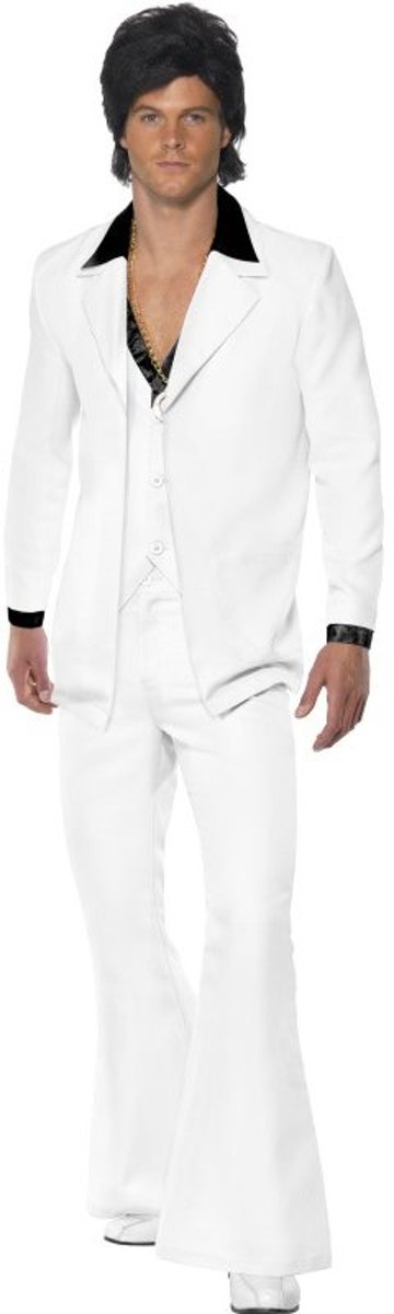 LUCIDA-CAMBODIA - Glanzend zilverkleurig disco kostuum voor mannen - XL - Volwassenen kostuums