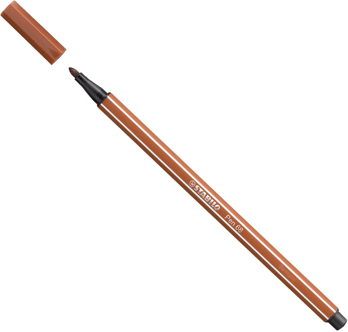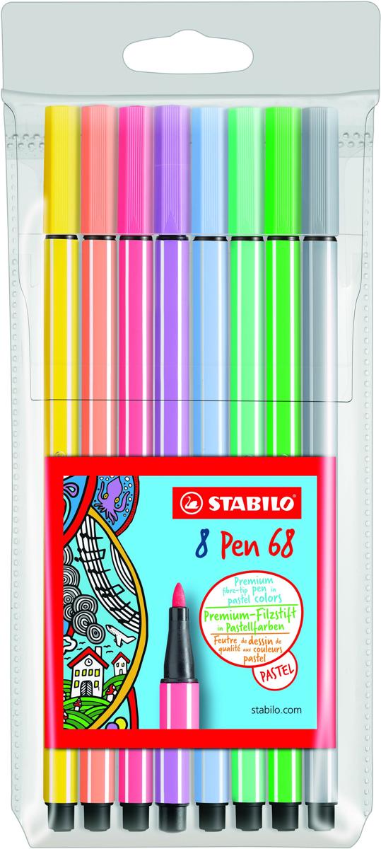 Het basis gereedschap voor alle aspirant tekenaars. Degene die houdt van tekenen en intense kleuren, wil alleen het beste materiaal. Stabilo Pen 68 is een hoge kwaliteit viltstift met intense kleuren, voor lijnen en grote vlakken.De stift heeft een robuuste, drukbestendige ronde punt met een schrijfbreedte van ca. 1 mm en bevat geurloze inkt op waterbasis.Kan tot 24 uur zonder dop, zonder uit te drogen.