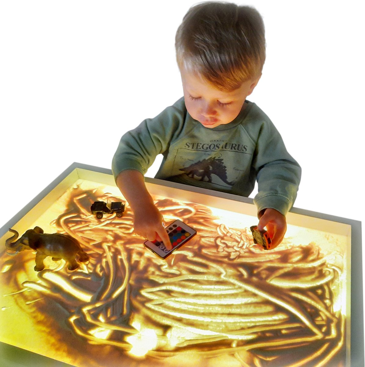 • Zintuiglijke spelletjes zijn nu nog belangrijker, aangezien de meeste kinderen dol zijn op gadgets. Zandtafels zetten activiteiten op waar kleuters kunnen communiceren met andere kinderen.