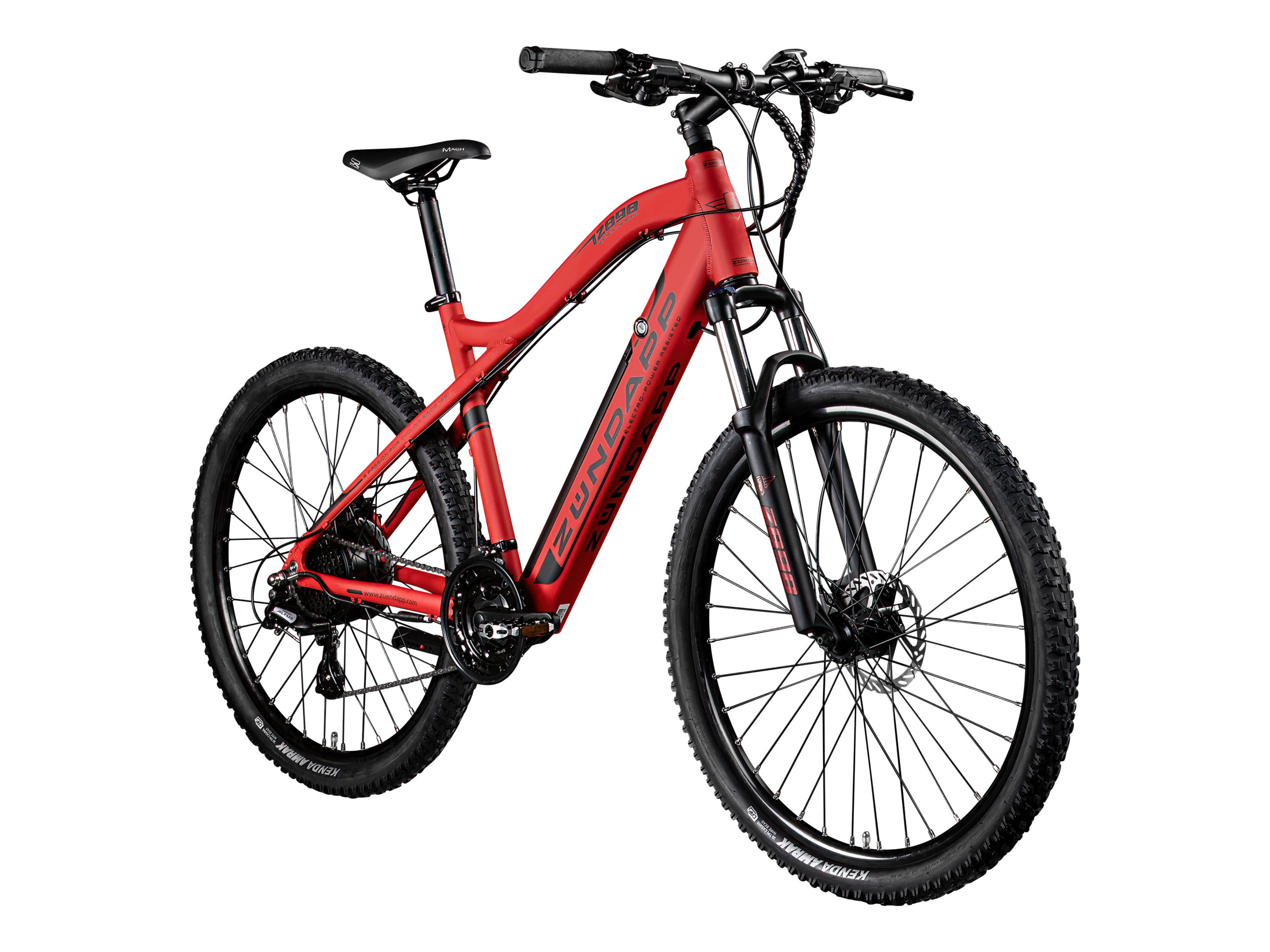 Type fiets: E-bike Geslacht: unisex Wielmaat: 27,5 inch Framehoogte: 48 cm Framemateriaal: aluminium Uitrusting volgens StVZO: nee Verzekering vereist: nee Staan: ja Bagagerek: nee Bel: nee Montagegraad bij aflevering: 98% Accu Merk accu: Greenway Elektrische stroom: 14 Ah Spanning: 36V Vermogen: 504 Wh Accupositie: frameaccu Rijpositie: achterwielmotor Duwhulp: ja Actieradius: 35 - 150 km afhankelijk van belading en rijstijl Oplaadtijd: ca. 5 - 6 uur Versnellingen Merk uitrusting: Shimano Altus Aantal versnellingen: 24 Type versnelling: derailleurversnelling Versteller: 3x8 trekkerversteller Kettingkast: kettingkastring Remmen Voorrem: hydraulische schijfremmen 160/160 mm Achterrem: hydraulische schijfremmen 160/160 mm Remtype: hydraulische schijfremmen Remsystemen: hydraulische schijfremmen Terugtraprem: nee Banden Bandenmerk: Kenda Bandbreedte: 27,5 x 2,10 inch Reflexbanden: nee Ventieltype: Schrader/Auto Merk velgen: Zündapp Bandensnelspanner: ja Afmetingen Gemonteerd: ca. 180 x 60