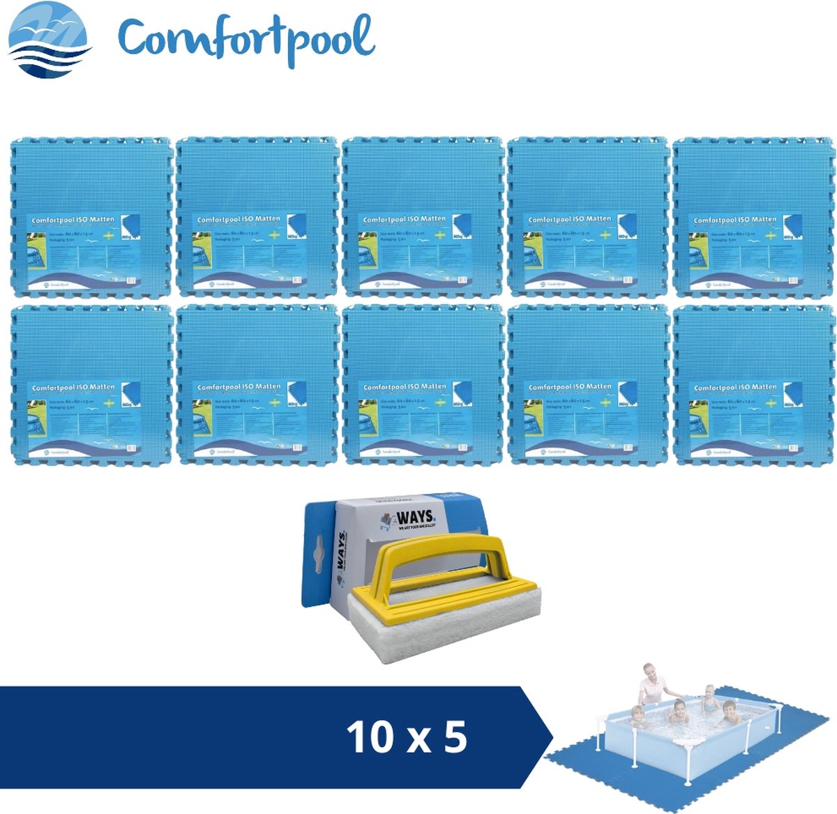 Zwembadtegels - 50x50 cm - (8 stuks per verpakking) - Blauw - 10 stuks - Voordeelverpakking - Inclusief WAYS Testrips (1 stuks)