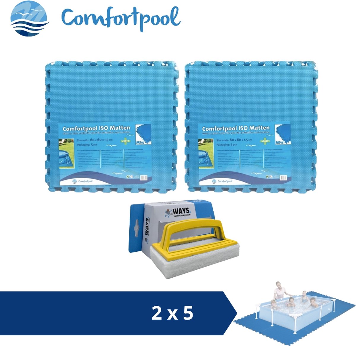 Zwembadtegels - 50x50 cm - (8 stuks per verpakking) - Blauw - 2 stuks - Voordeelverpakking - Inclusief WAYS Testrips (1 stuks)