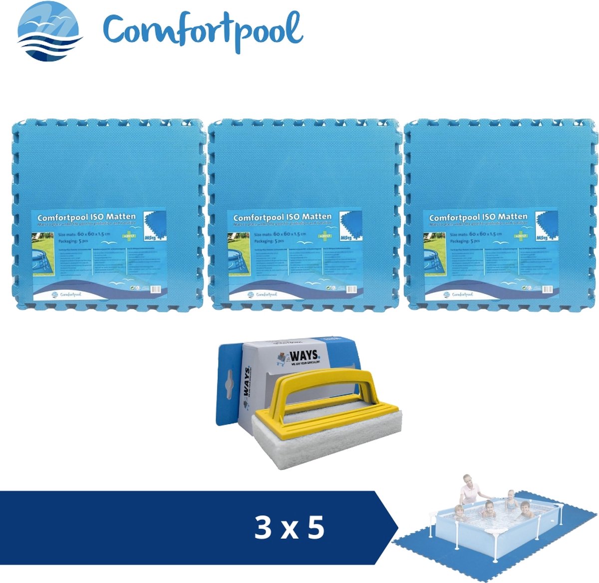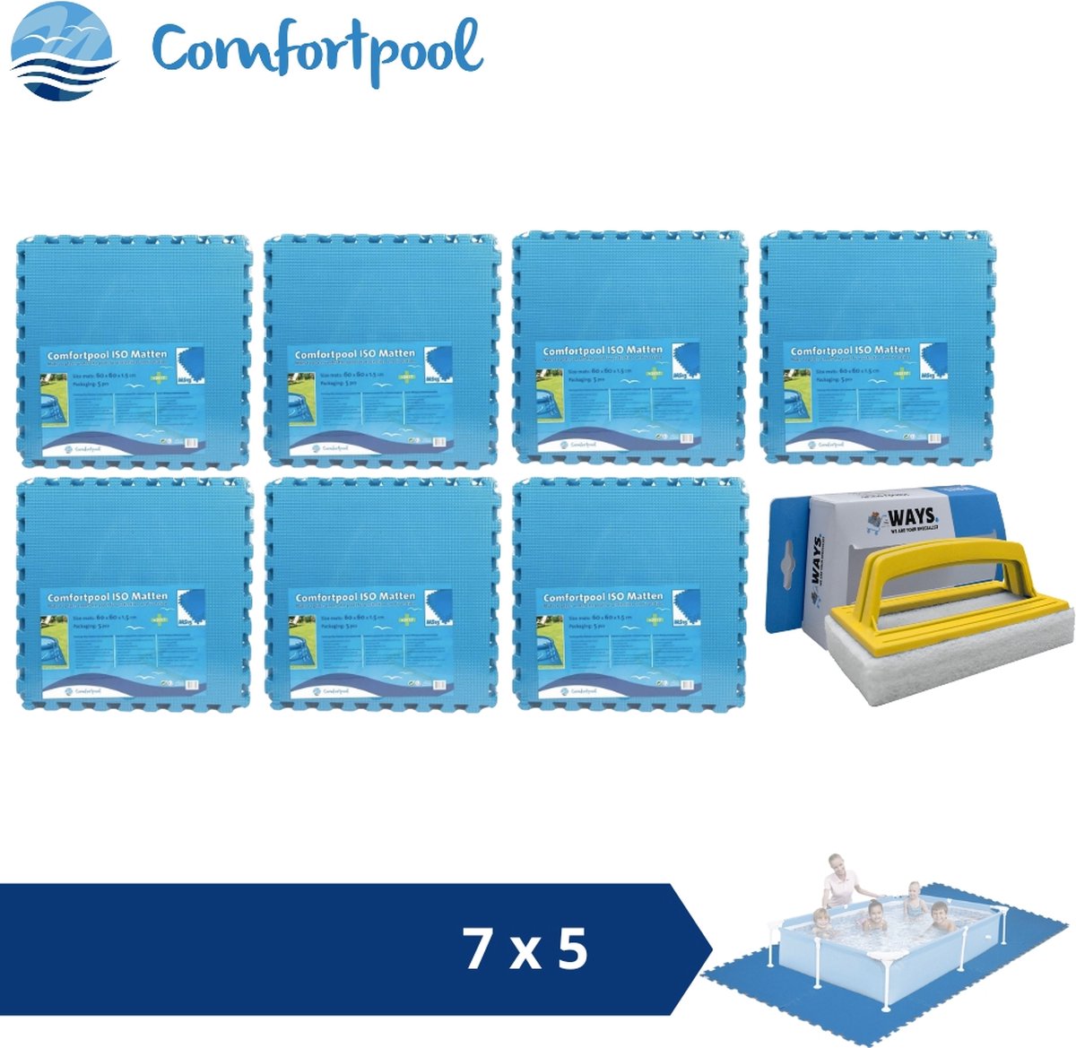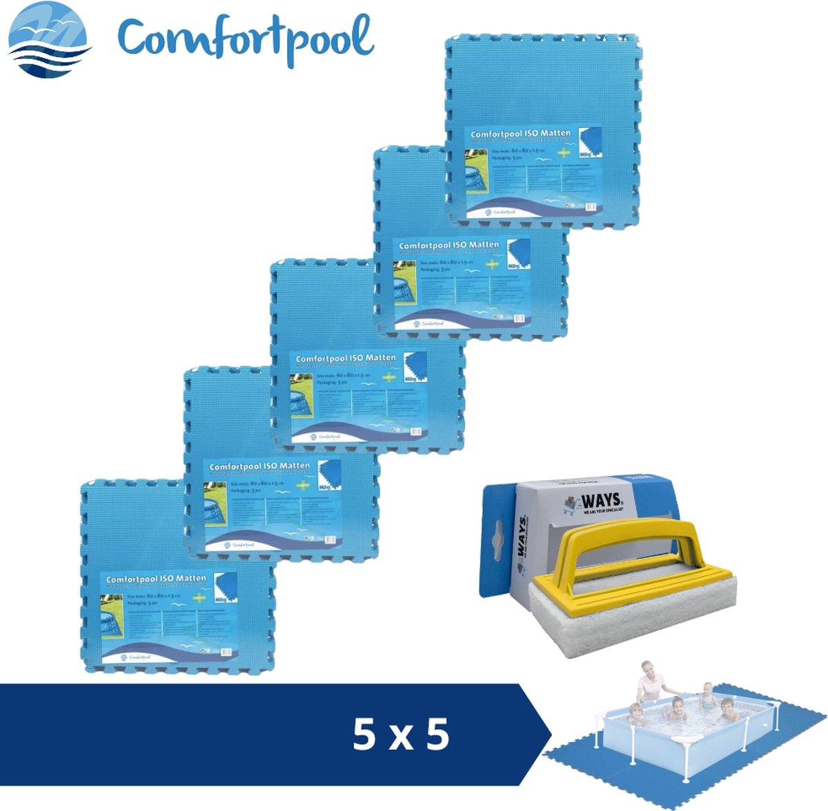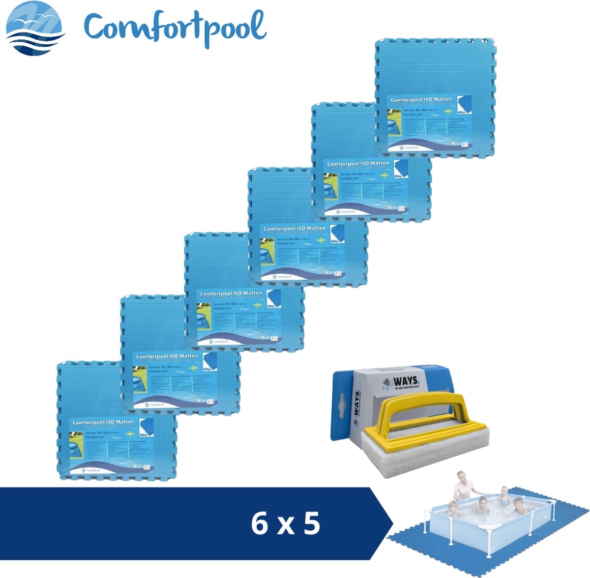 Zwembadtegels - 50x50 cm - (8 stuks per verpakking) - Blauw - 6 stuks - Voordeelverpakking - Inclusief WAYS Testrips (1 stuks)