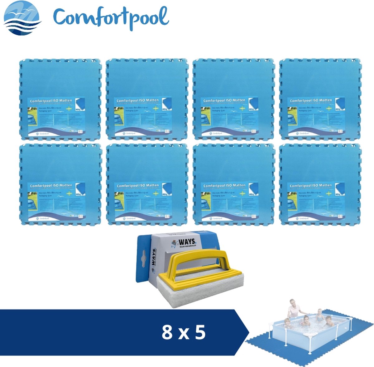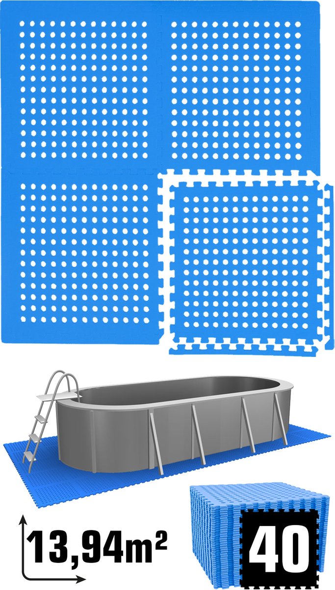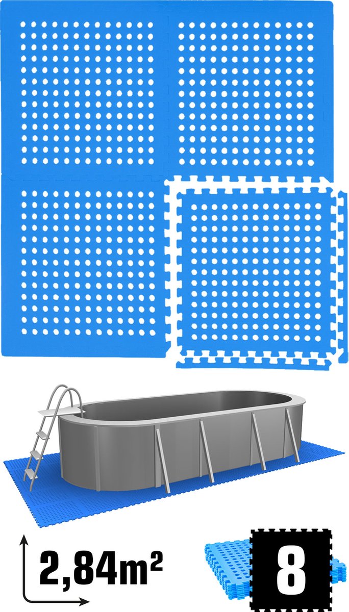 WAYS Dluxe - Multifunctionele Vloertegels - Set van 8 tegels - 50 x 50 cm - Blauw - Voor bescherming van zwembadbodem