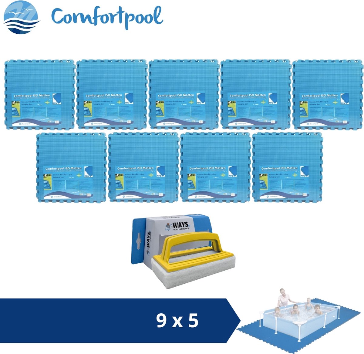 Flowclear - Zwembad tegels - Vloerbescherming - Set van 9 stuks - 50 x 50 cm - 2.25 m2