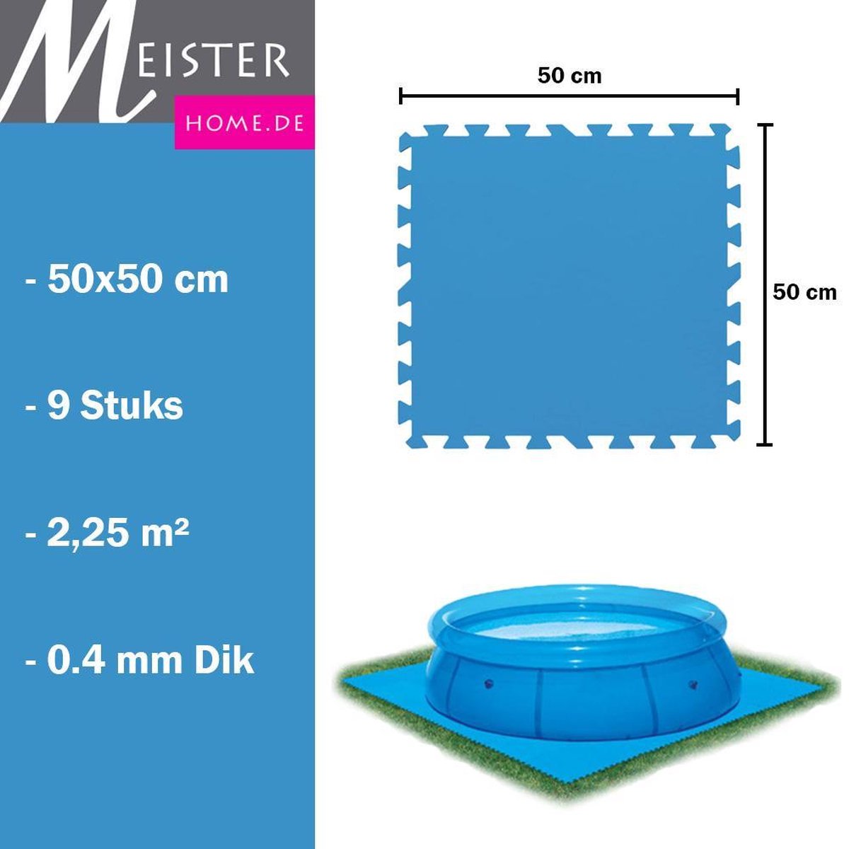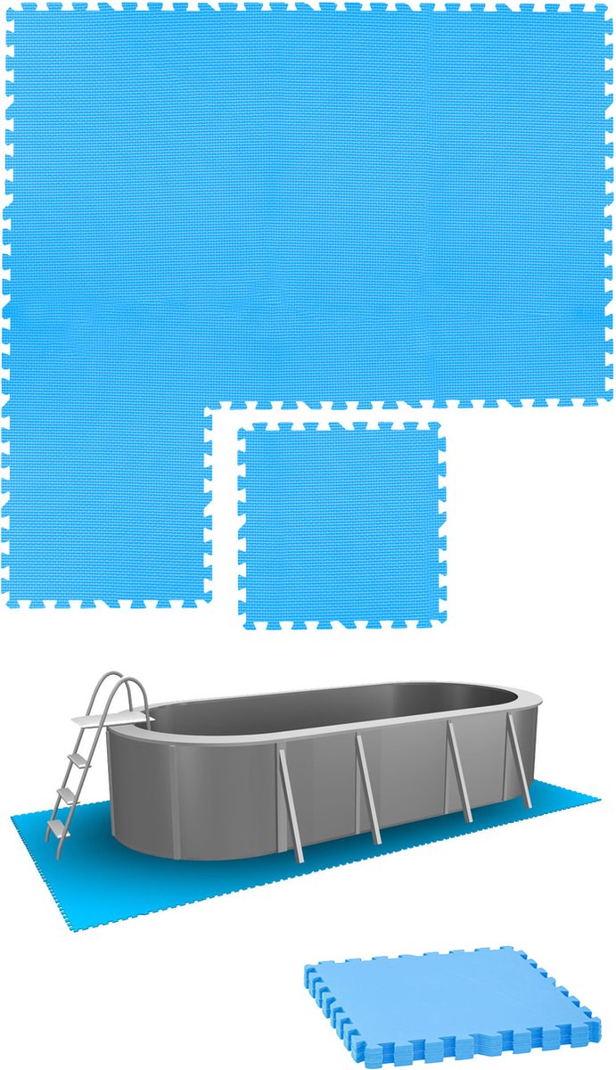 - Zwembadtegels - Set van 8 tegels - 50 x 50 cm - Blauw - Voor bescherming van zwembadbodem