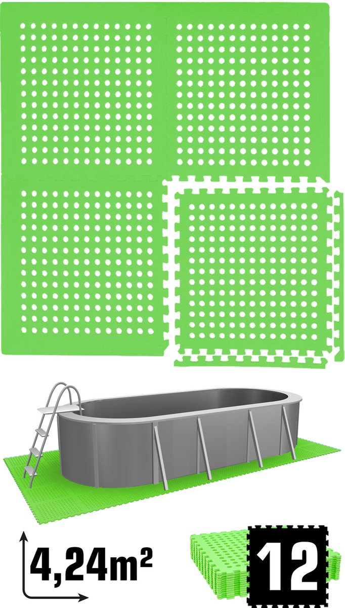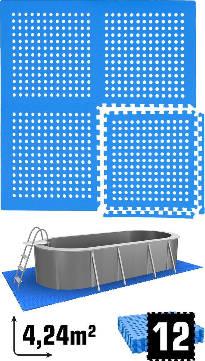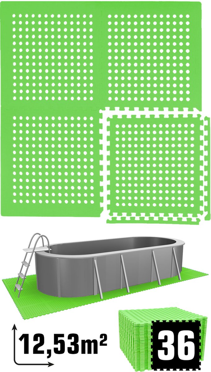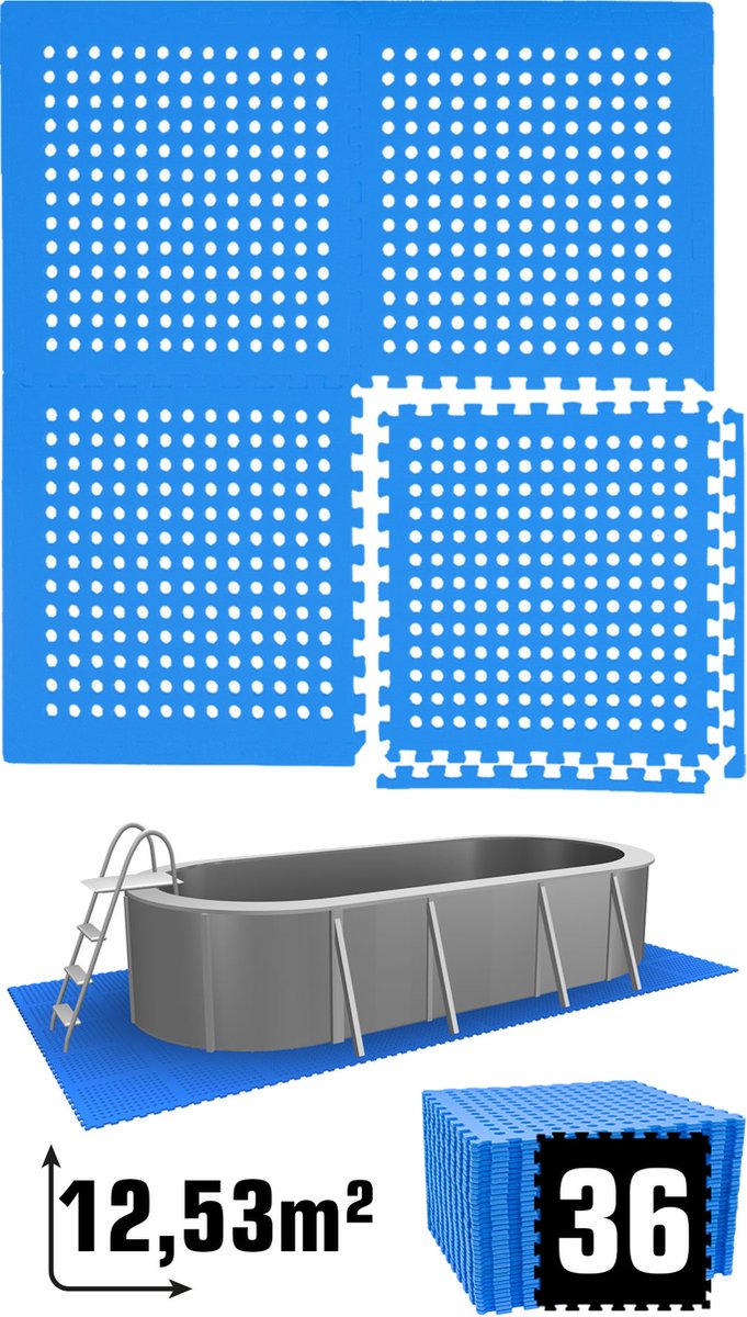 - Zwembadtegels - 48 tegels - Beschermmat voor zwembadbodem - 4.32 m² - Fitnesstegels - Ondergrondtegels
