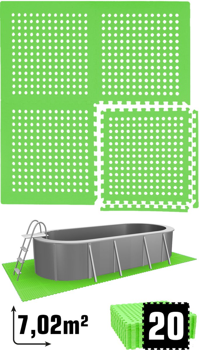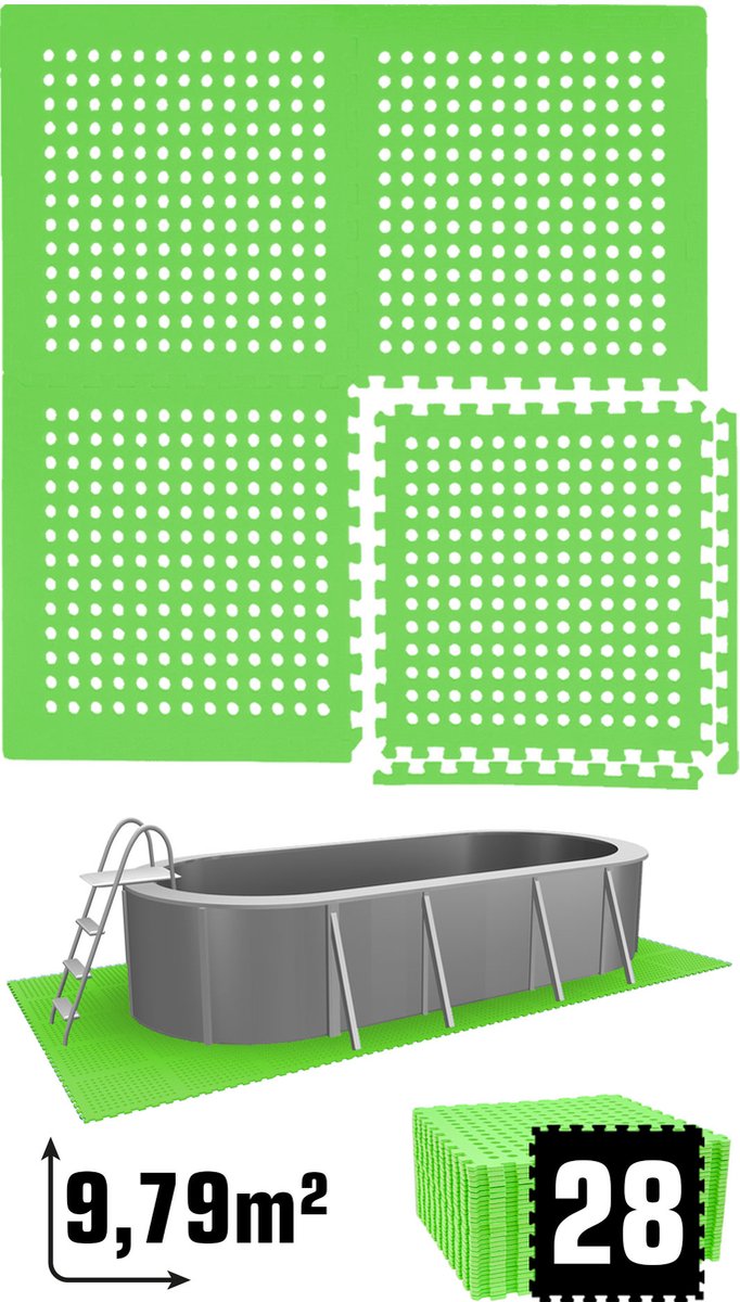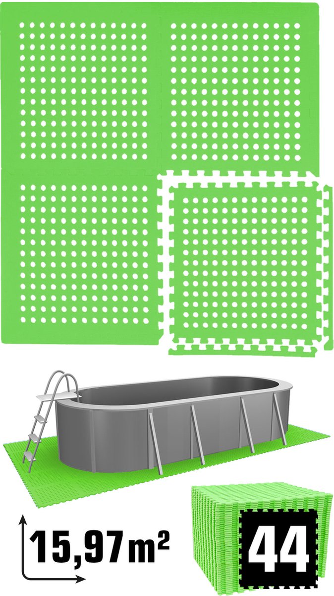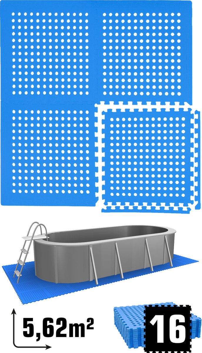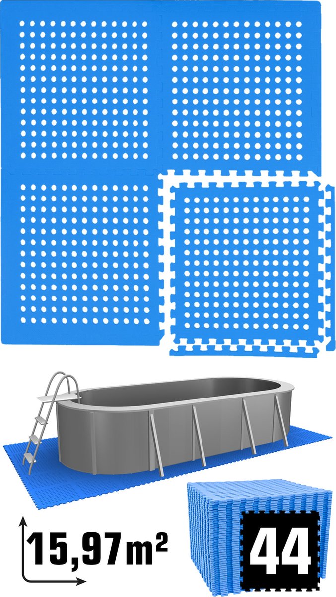 Hikemeister – Zwembad tegels – 18 stuks - 2.88 m² - 1 cm dik - zwembad vloerbescherming - foam tegels met rand stukken - warmte isolerend – drainagegaten - anti slip - outdoor tegels