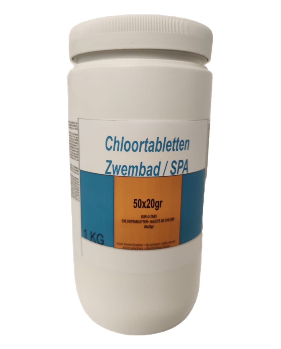 Chloortabletten 20 gram 1 kg - Inclusief zwembadmannetjes doseerschema - Chloortabletten voor zwembad en jacuzzi - Chloor 20 gram - Chloortabletten klein zwembad tot gemiddeld