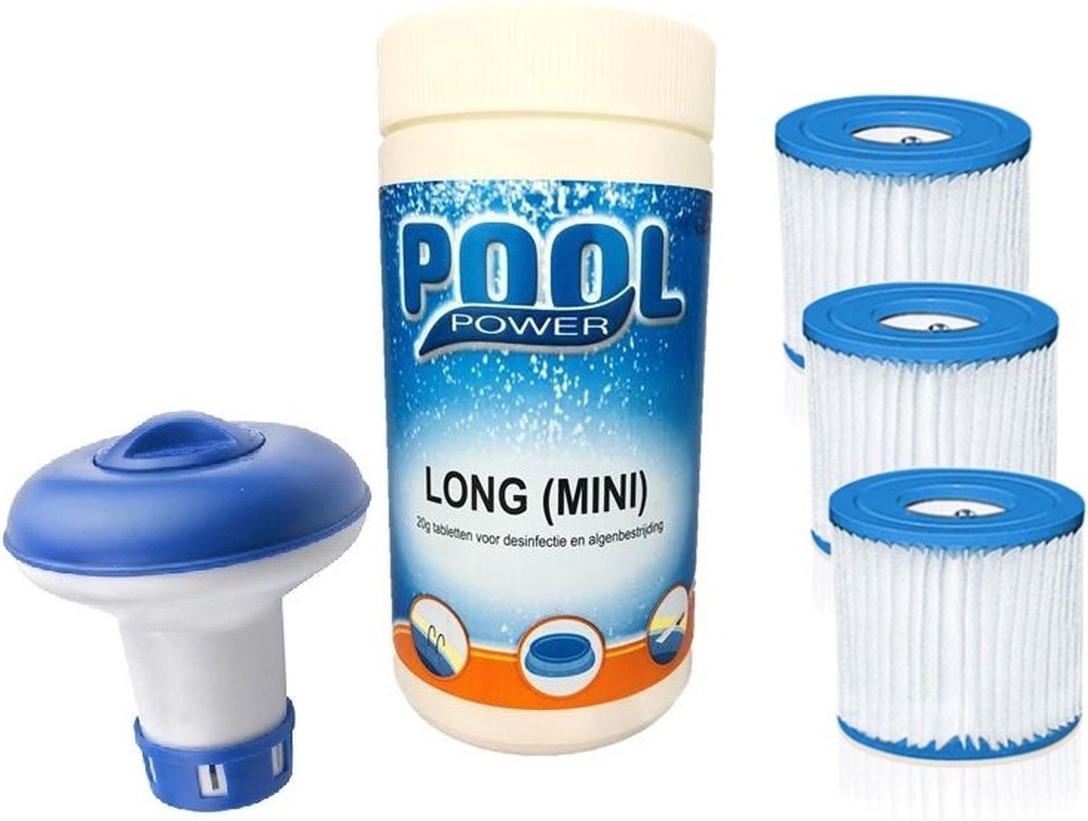 Zwembad Onderhoudsset - Startersset bevat Chloor - Testrips - Chloordrijver en Filter - Voor zwembad met 28604GS - 28636GS - 28638GS Filterpomp - Voor zwembaden tot 2500 liter (4-delig)