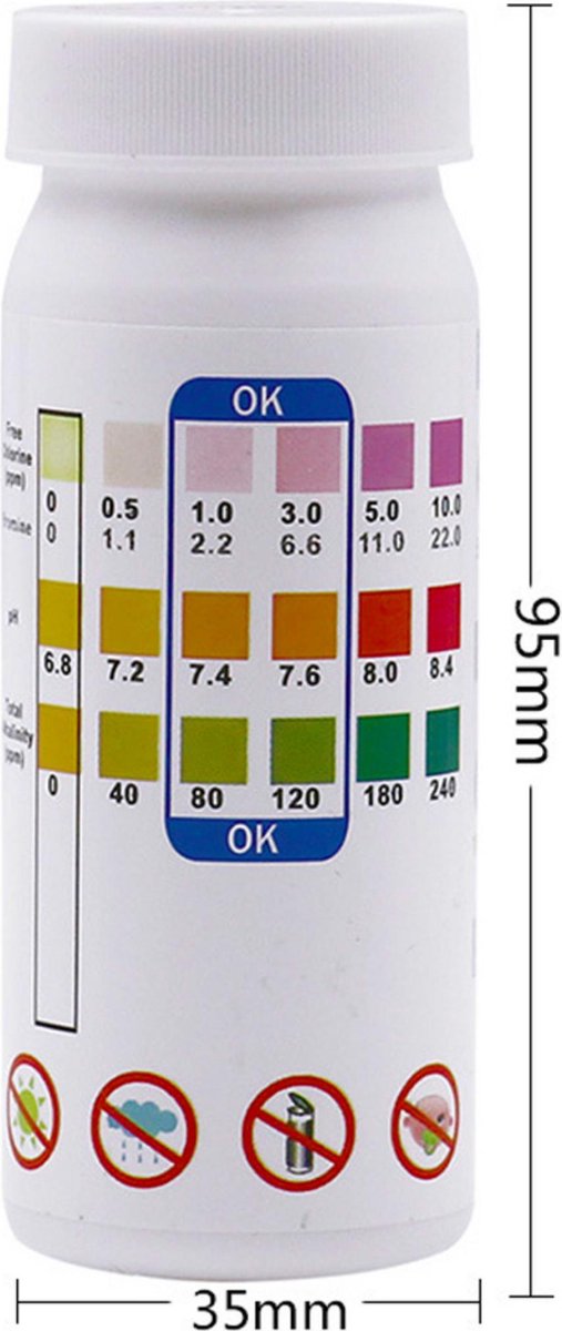 100 stuks waterkwaliteitsteststrips - 16-in-1 pH-testkit voor bronwater en drinkwater - Waterkwaliteitstestkit - Zwembadteststrips - Voor rioolwater, gezuiverd water, zeewater, visserijwater, zwembadwater en aquariumwater