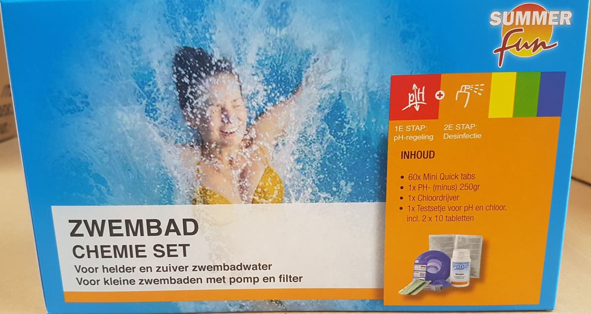 Zwembad Onderhoudsset - Startersset bevat Chloor - Chloordrijver - PH-min en PH-plus - Testrips - Thermometer - Zwembad Onderhoud Starterspakket - Chloortabletten - Ideaal voor Opzetzwembaden - Voor zwembaden van 2500 tot 25.000 liter (6-delig)