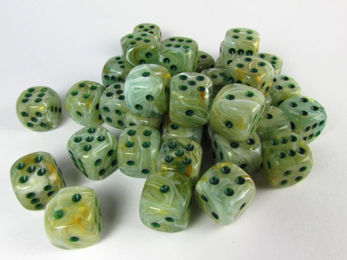 dobbelstenen set, 36 6-zijdig 12 mm, Marble green w/dark green