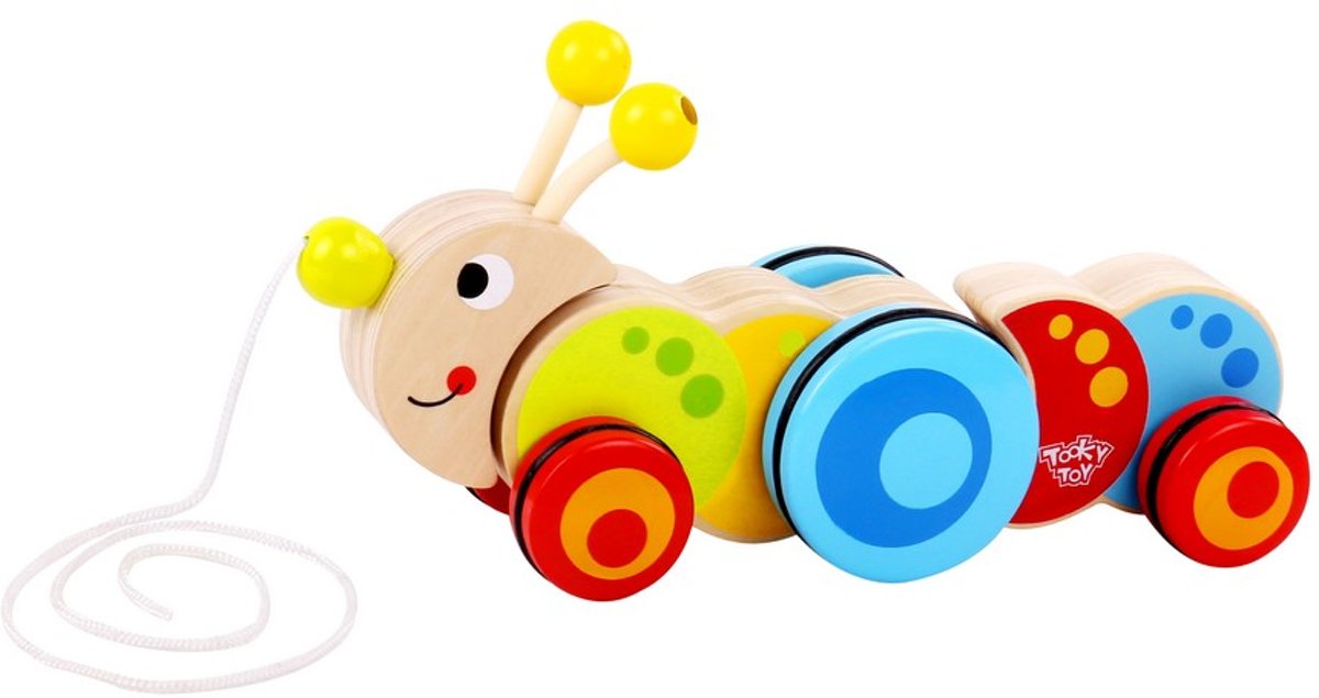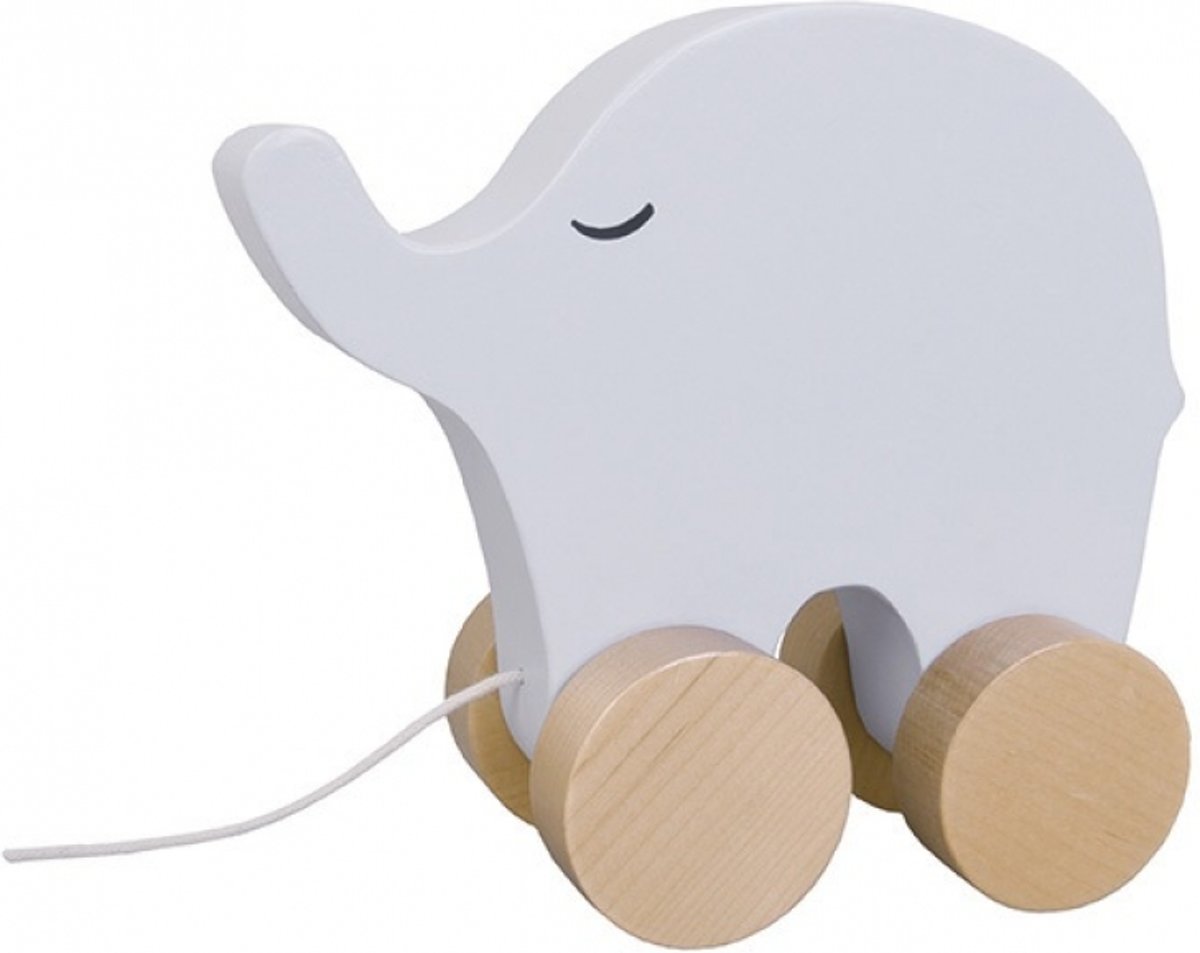 Trekfiguur / trekdier hout + kralenspiraal - Olifant - Houten speelgoed vanaf 1 jaar