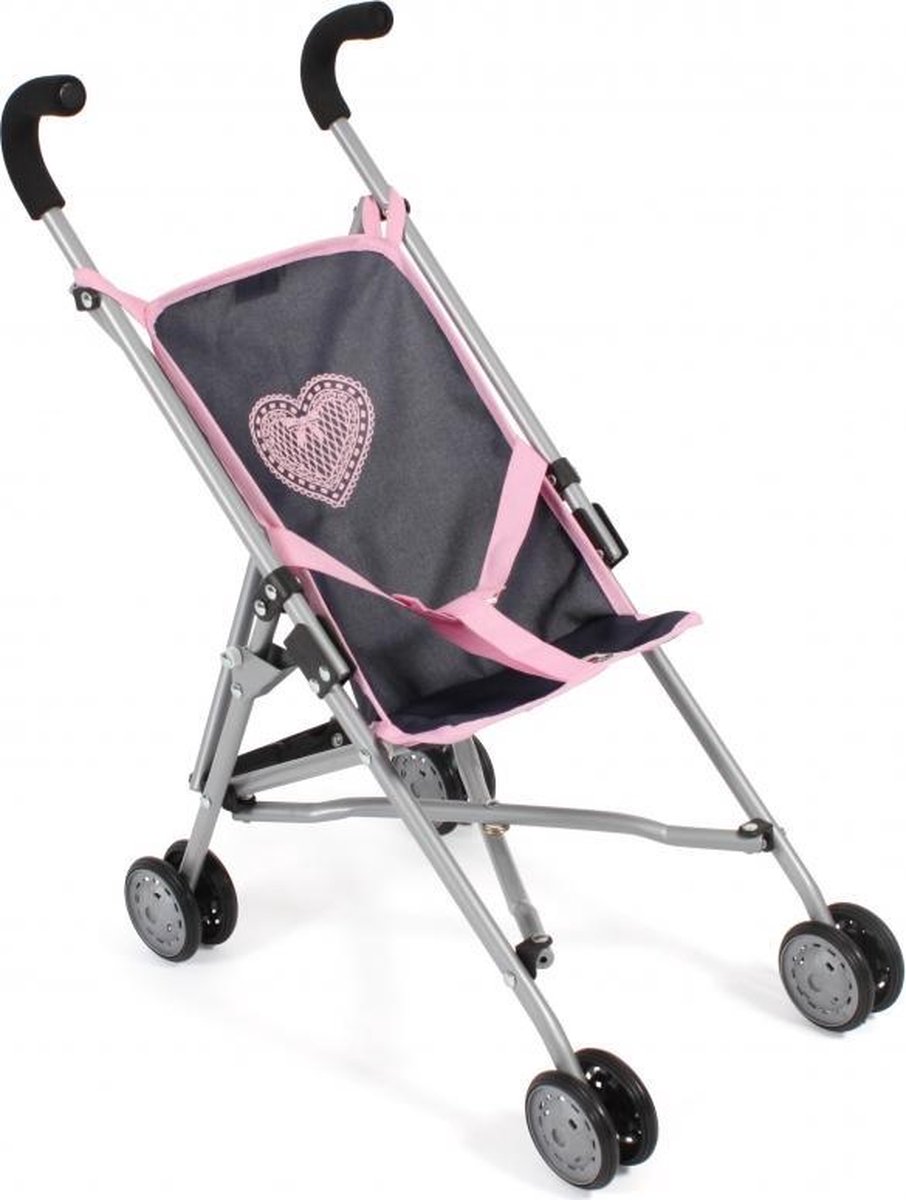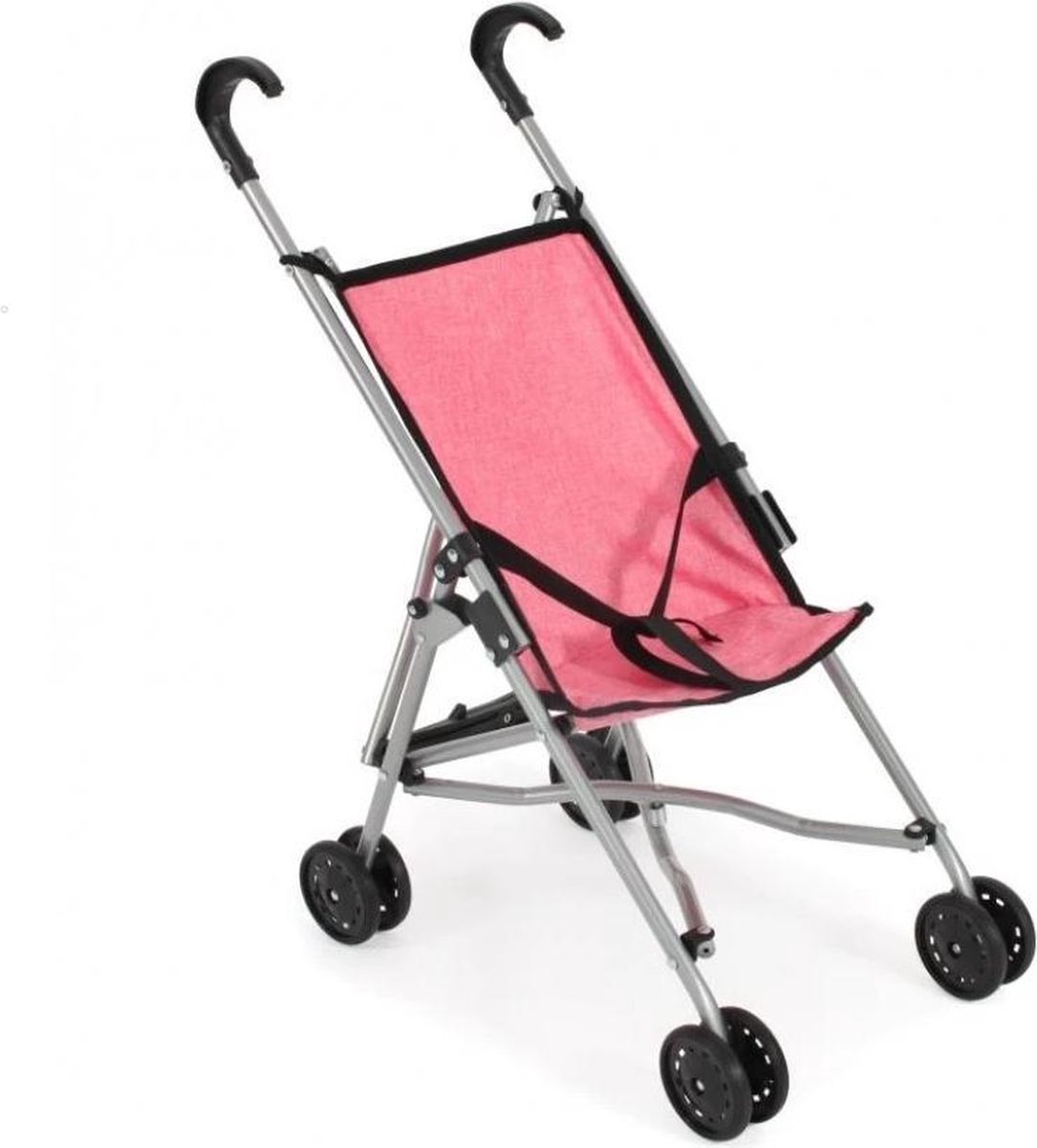 Poppen buggy - Donker roze, zwart