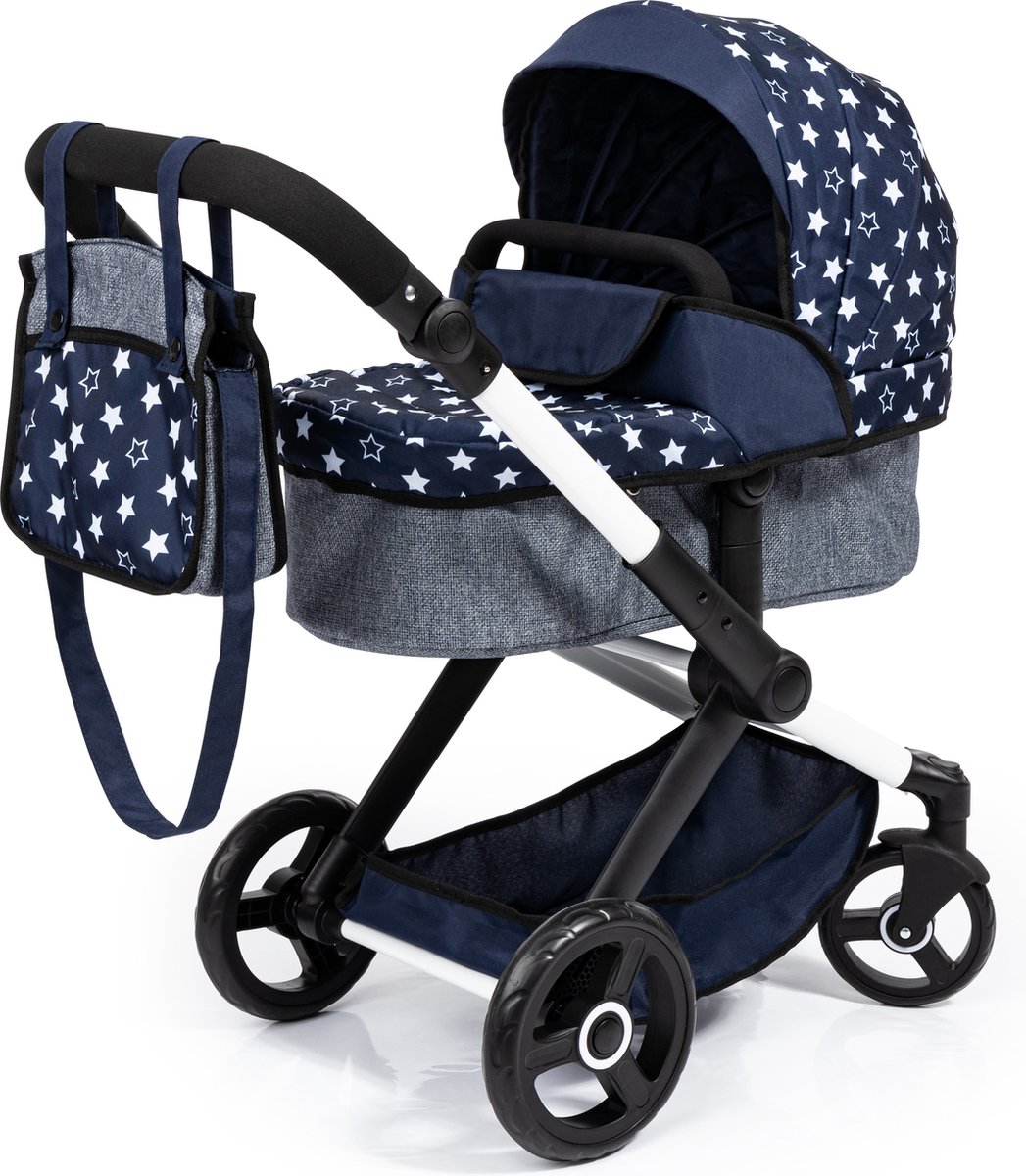 – Combi-poppenwagen Mika – Stars Turquoise Beige