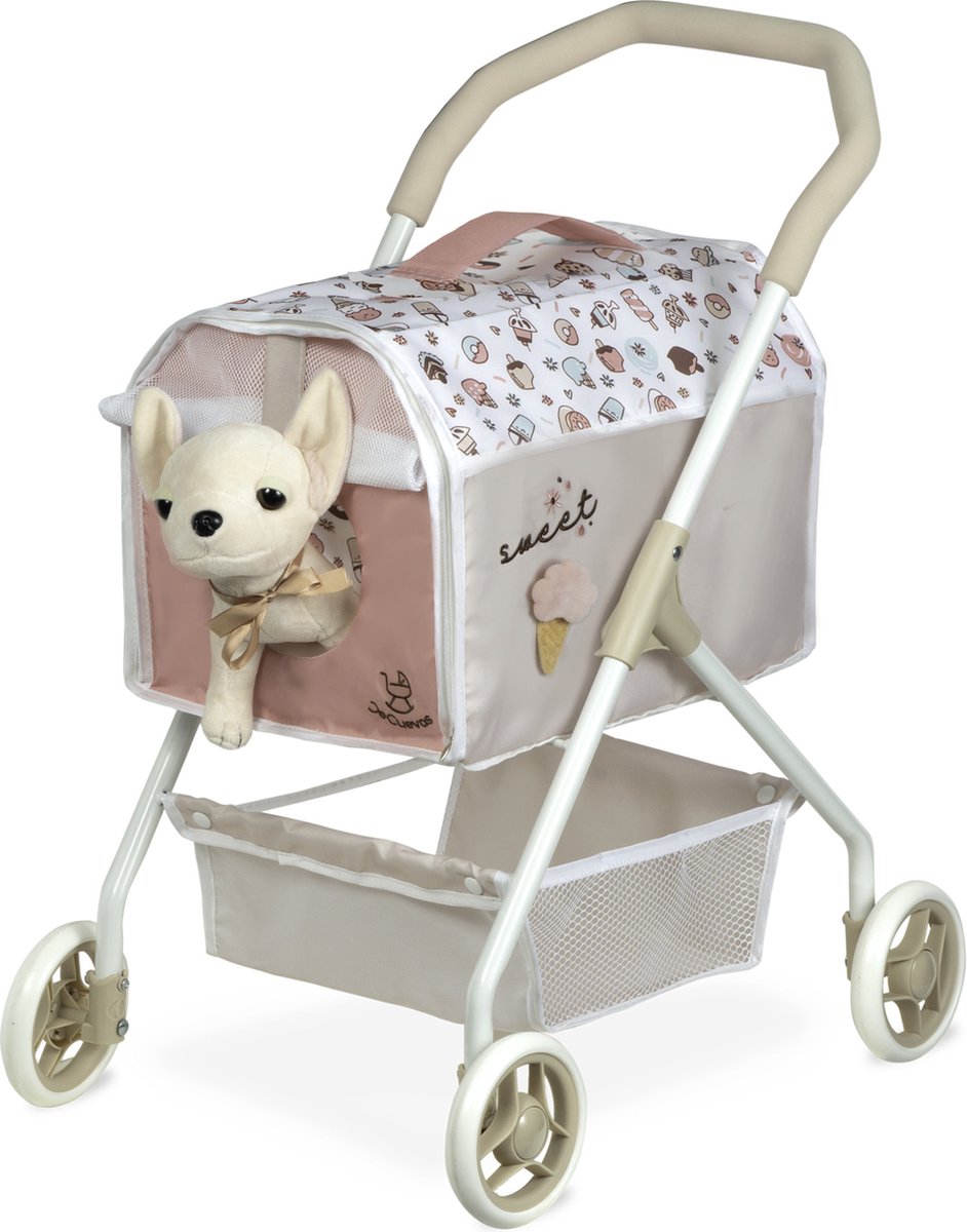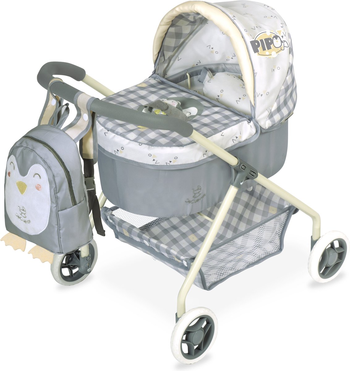 2-in-1 Classic beige met afneembare wieg, verstelbare kap, mand en tas, bevordert empathie en fantasierijk spel