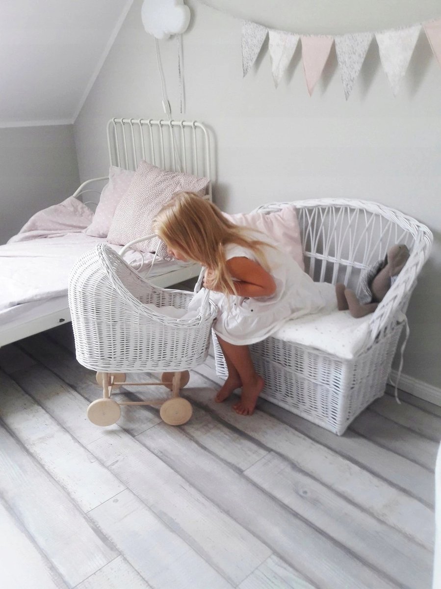 ® Rieten poppenwagen met bedlinnen voor kinderen