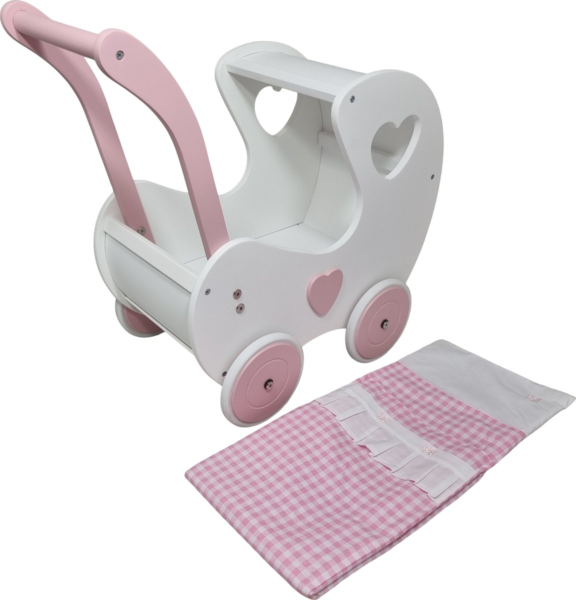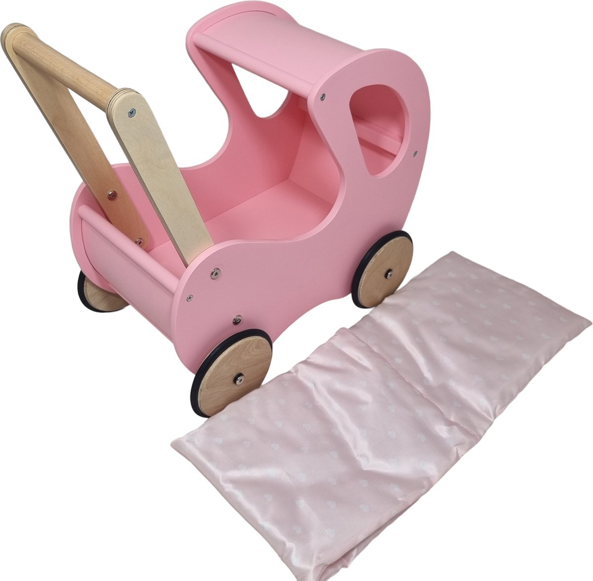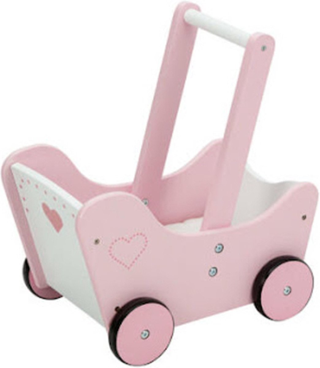® Houten poppenwagen met rubberbanden - 40 x 34 x 60 cm