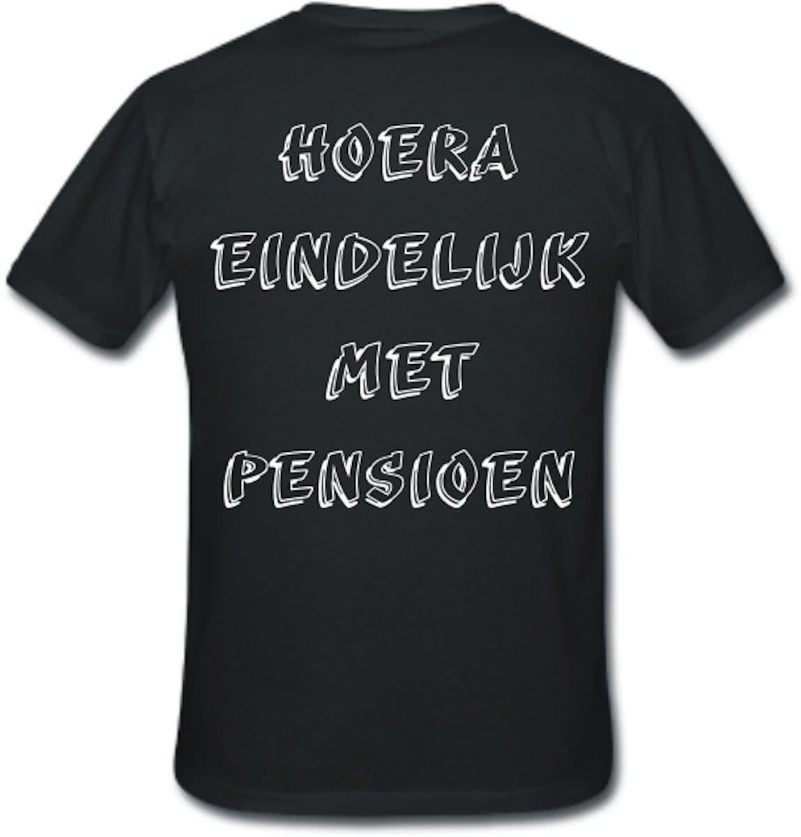 T-shirt - Hoera eindelijk met pensioen - Heren Zwart (maat M)