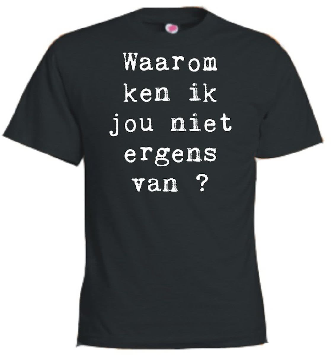 T-shirt - Waarom ken ik jou niet ergens van? - Unisex Zwart (maat M)