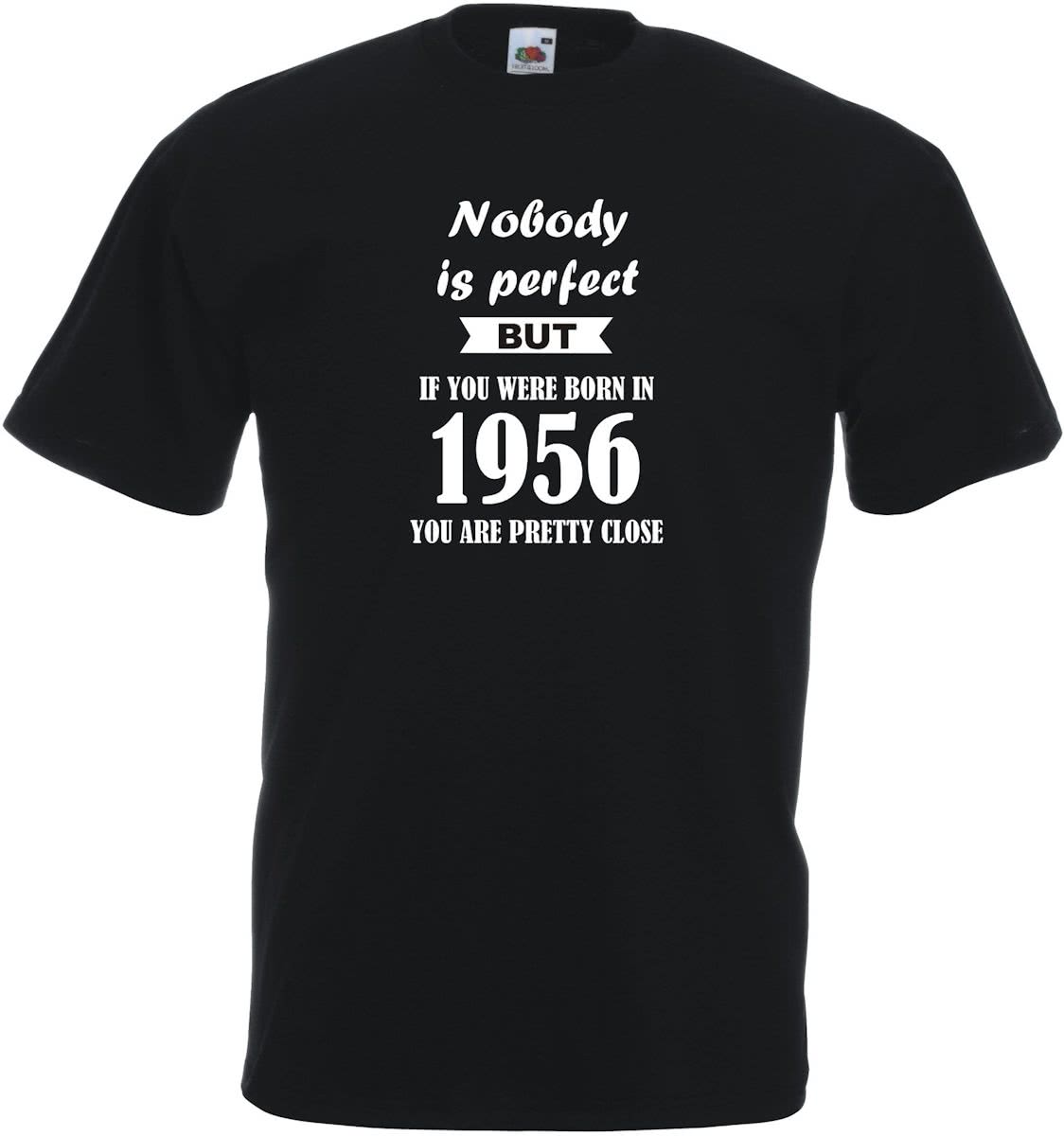Mijncadeautje - Unisex T-shirt - Nobody is perfect - geboortejaar 1956 - zwart - maat M