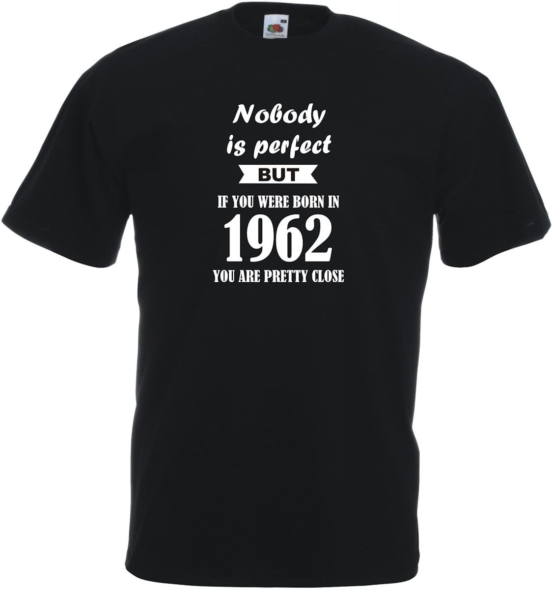 Mijncadeautje - Unisex T-shirt - Nobody is perfect - geboortejaar 1961 - zwart - maat XL