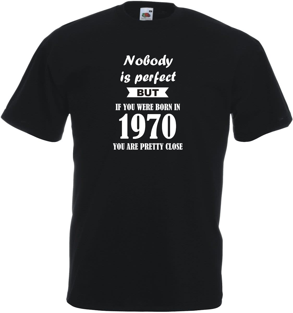 Mijncadeautje - Unisex T-shirt - Nobody is perfect - geboortejaar 1975 - zwart - maat L
