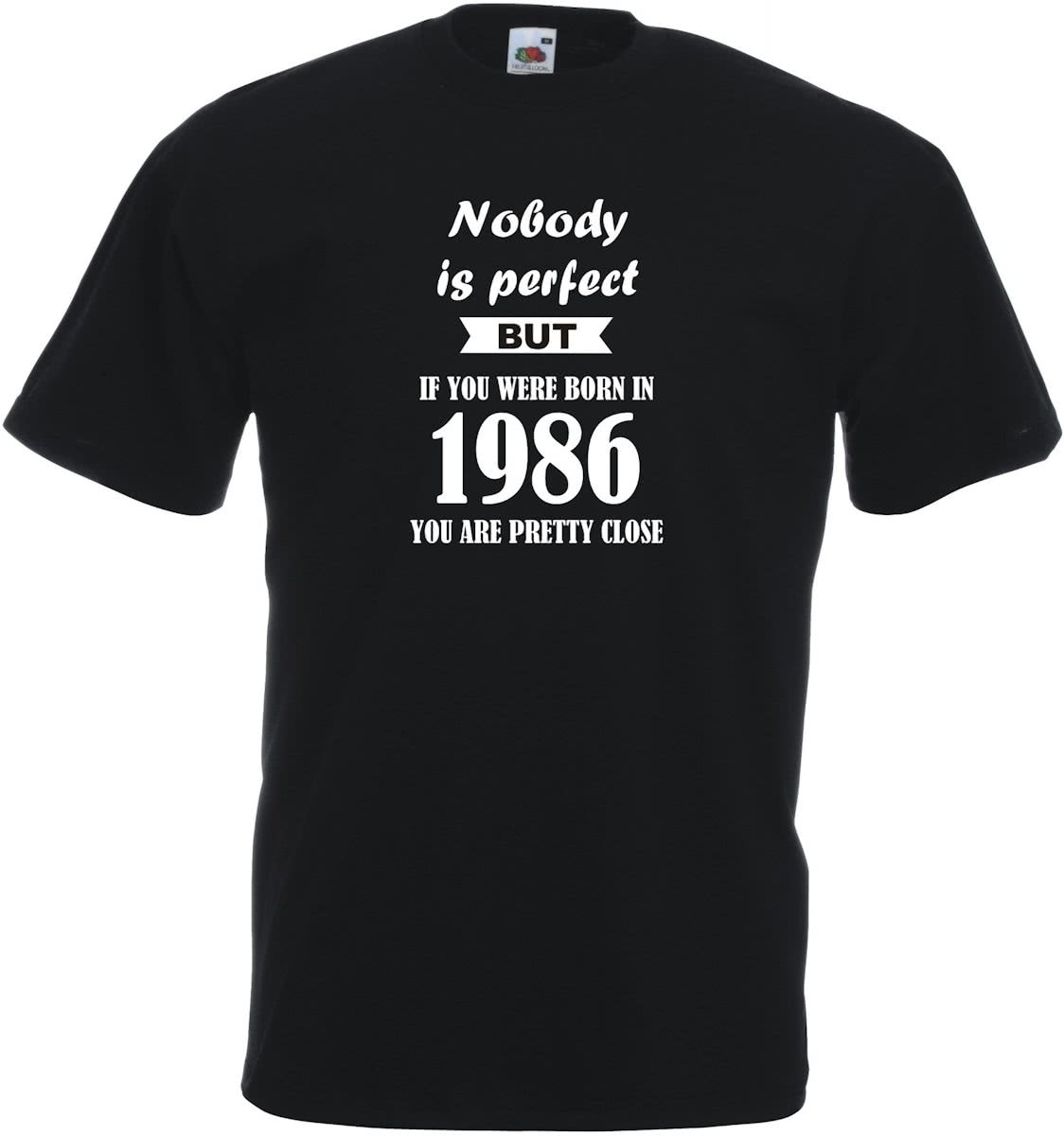 Mijncadeautje - Unisex T-shirt - Nobody is perfect - geboortejaar 1986 - zwart - maat XXL