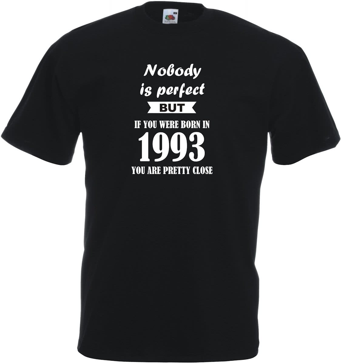 Mijncadeautje - Unisex T-shirt - Nobody is perfect - geboortejaar 1992 - zwart - maat L