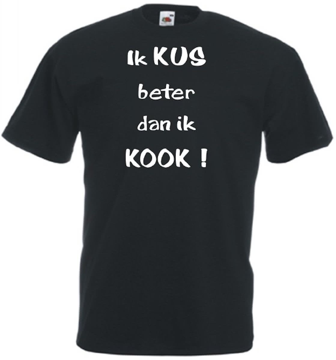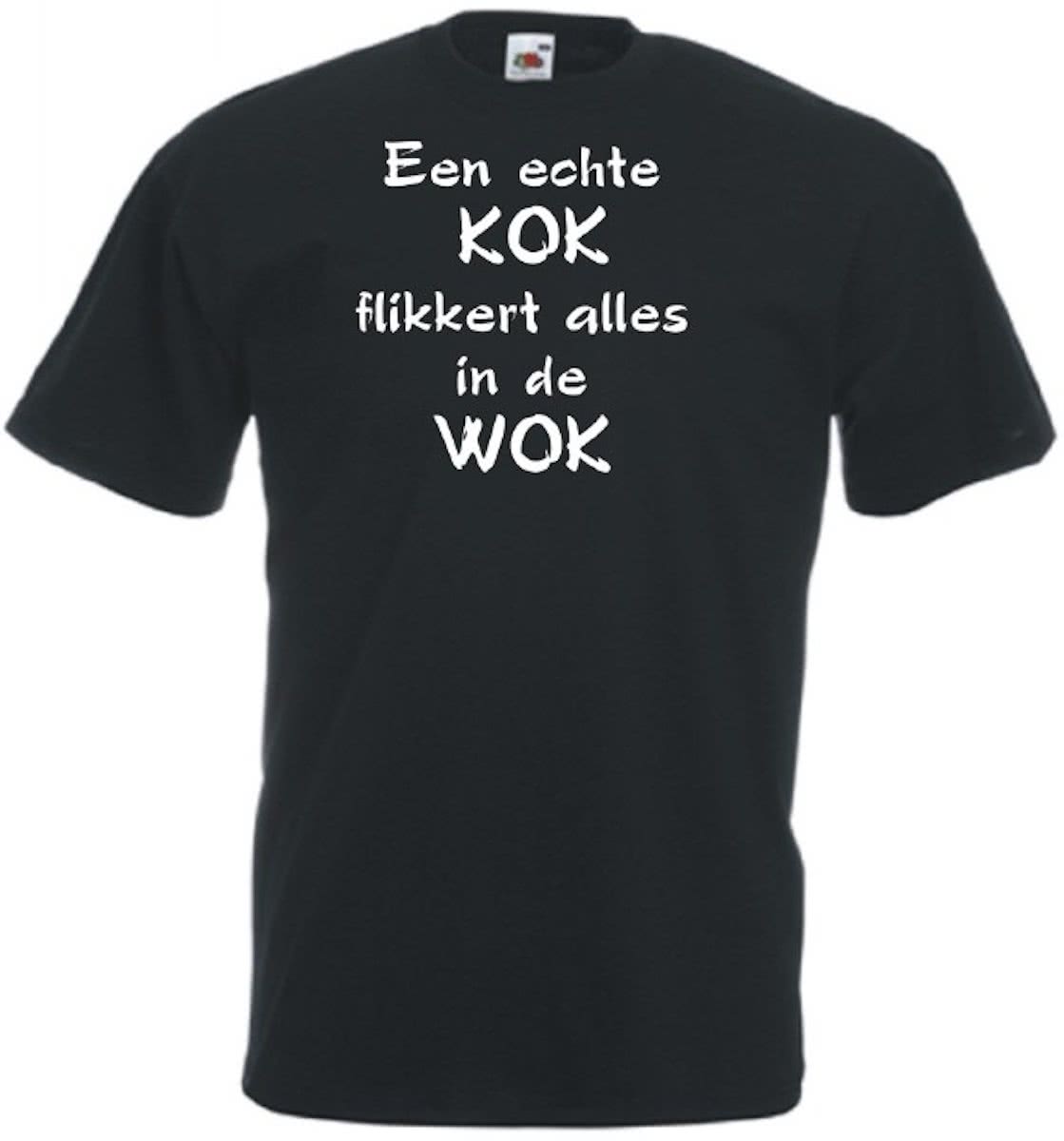 Mijncadeautje Unisex T-shirt zwart (maat L) Een echte kok flikkert alles in de wok