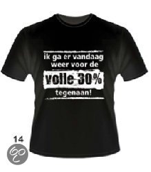 Slogan T-Shirt Maat XL - Ik ga er vandaag weer voor de volle 30% tegenaan