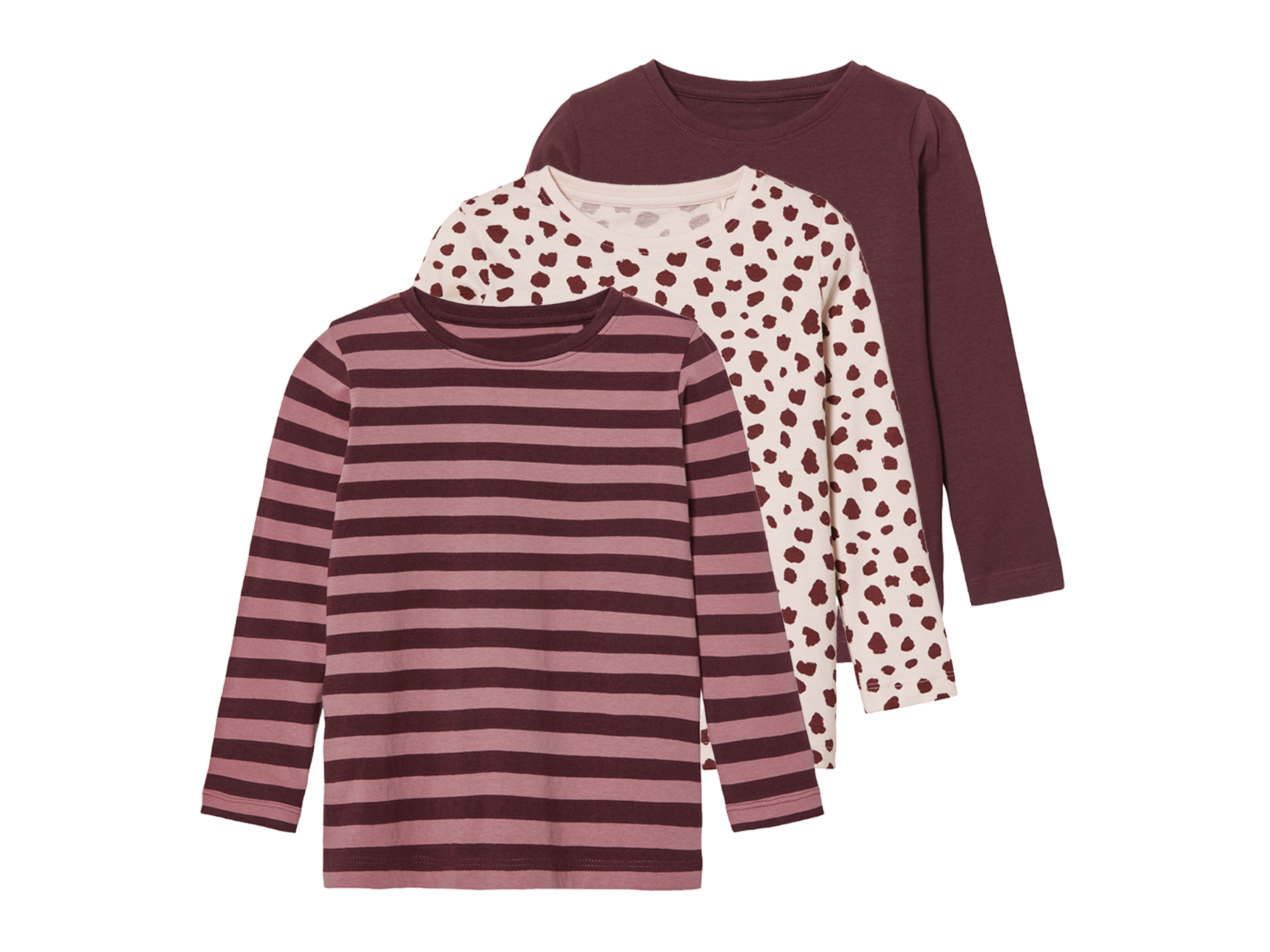 Wij ondersteunen de duurzame katoenteelt in Afrika Met ronde hals Geschikt voor droger 3 stuks Strepen/blauw/bruin: Met katoen 1x met dekoratieve patch Strepen/lichtroze/roze: Aangenaam draagcomfort door zuiver katoen 1x met dekoratieve patch Strepen/gevlekt/roze/bordeaux: Aangenaam draagcomfort door zuiver katoen Productkenmerken table{width:100%;}td{padding-right: 30px; padding: 0.5rem; border-bottom: 0.0625rem solid #e3e4e5;} tr:nth-child(odd) {background-color: #F2F3F4;} Kleur: Strepen/blauw/bruin:, strepen/lichtroze/roze:, strepen/gevlekt/roze/bordeaux Patroon: Gedeeltelijk Detail: Strepen/lichtroze/roze / strepen/gevlekt/roze/bordeaux: 1x met dekoratieve patch Hals: Ronde hals Materiaal: Strepen/blauw/bruin: 100 % katoen, bruin: 60 % katoen, 40 % polyester Strepen/lichtroze/roze / strepen/gevlekt/roze/bordeaux: 100 % katoen Onderhoudsinstructie: Wassen op max. 40 °C Niet bleken Voorzichtig drogen in de wasdroger op max. 60 °C Strijken tot 150 °C (stand 2). Stoomstrijkijzer kan