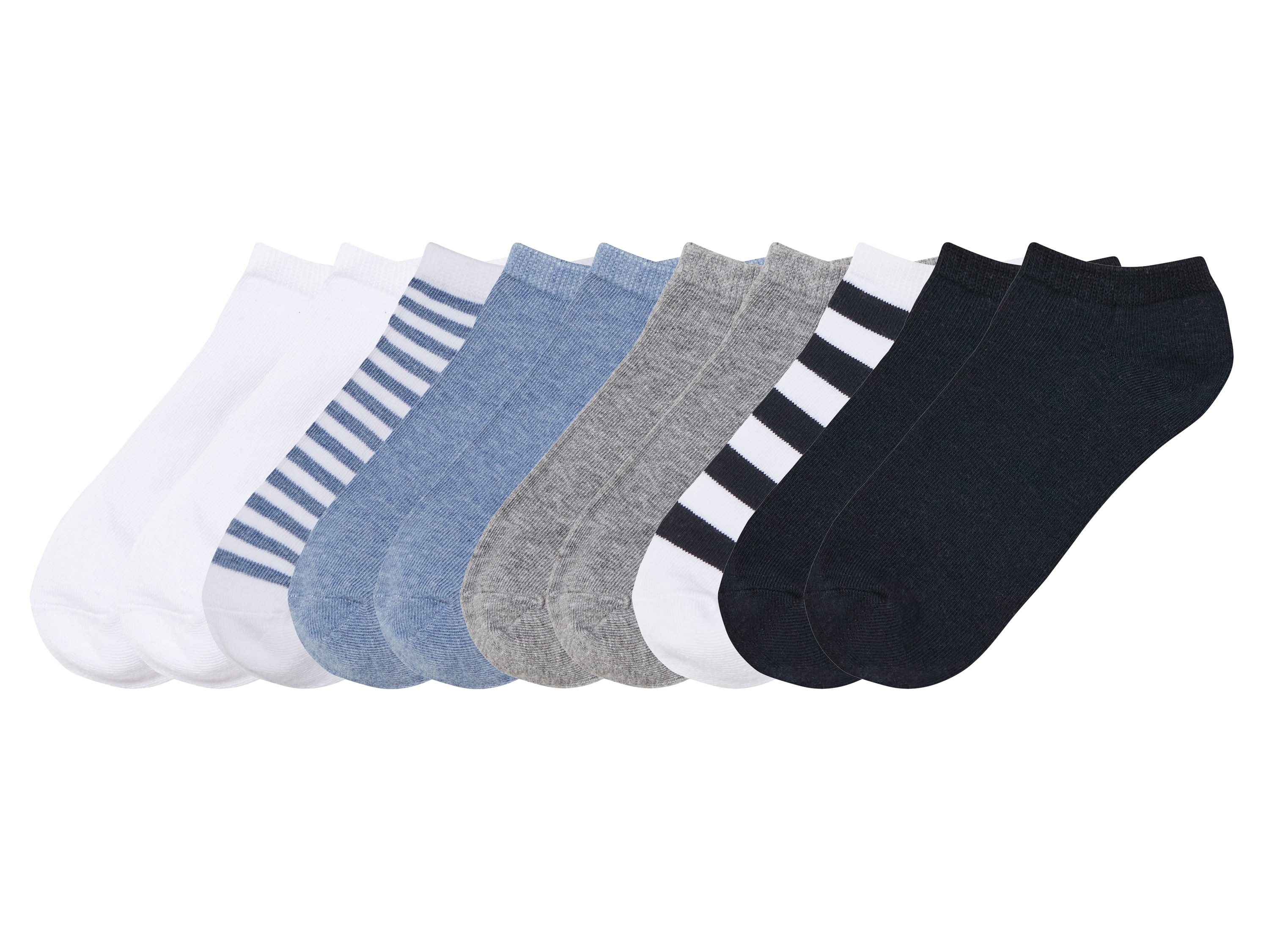 Met bio-katoen Optimale pasvorm en vormstabiliteit dankzij het merk Lycra® 10 paar Productkenmerken table{width:100%;}td{padding-right: 30px; padding: 0.5rem; border-bottom: 0.0625rem solid #e3e4e5;} tr:nth-child(odd) {background-color: #F2F3F4;} Kleur: Wit/blauw/grijs/zwart, wit/roze/beige/grijs/zwart Patroon: - Detail: Hoog katoengehalte Multipack: 10 paar Materiaal: Wit/blauw/grijs/zwart: 78 % katoen (bio), 20 % polyamide, 2 % elastaan (Lycra®) Wit/roze/beige/grijs/zwart: 78 % katoen (bio), 20 % polyamide, 2 % elastaan (Lycra®); met bloemen, met hartjes: 71 % katoen (bio), 27 % polyamide, 2 % elastaan (Lycra®) Onderhoudsinstructie: Wassen op max. 40 °C Niet bleken Niet in de wasdroger drogen Niet strijken Niet chemisch reinigen Maat: 31/34 - 39/42