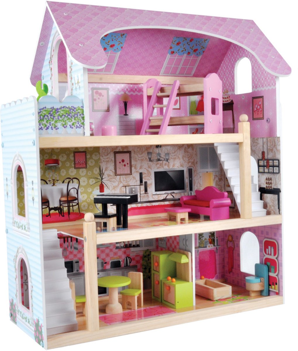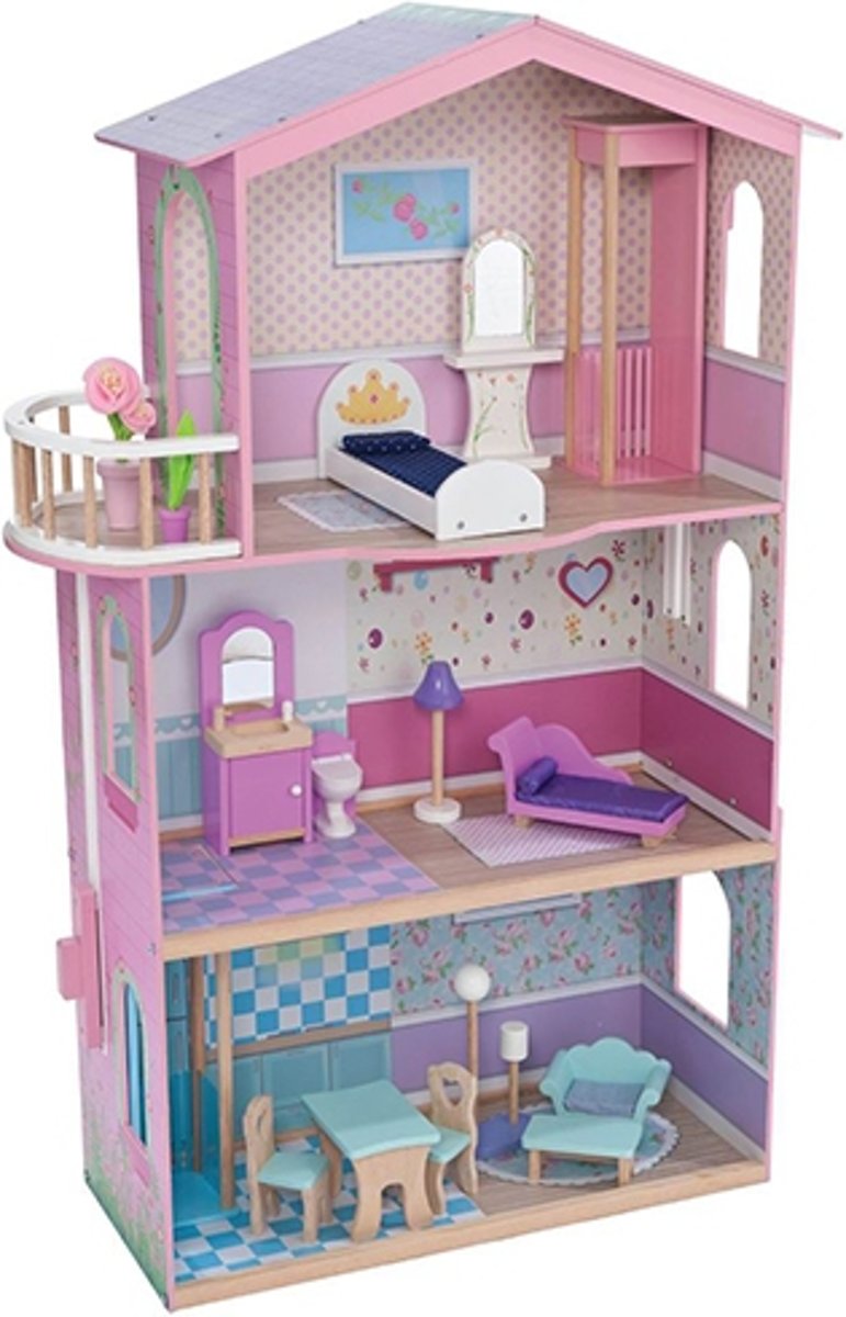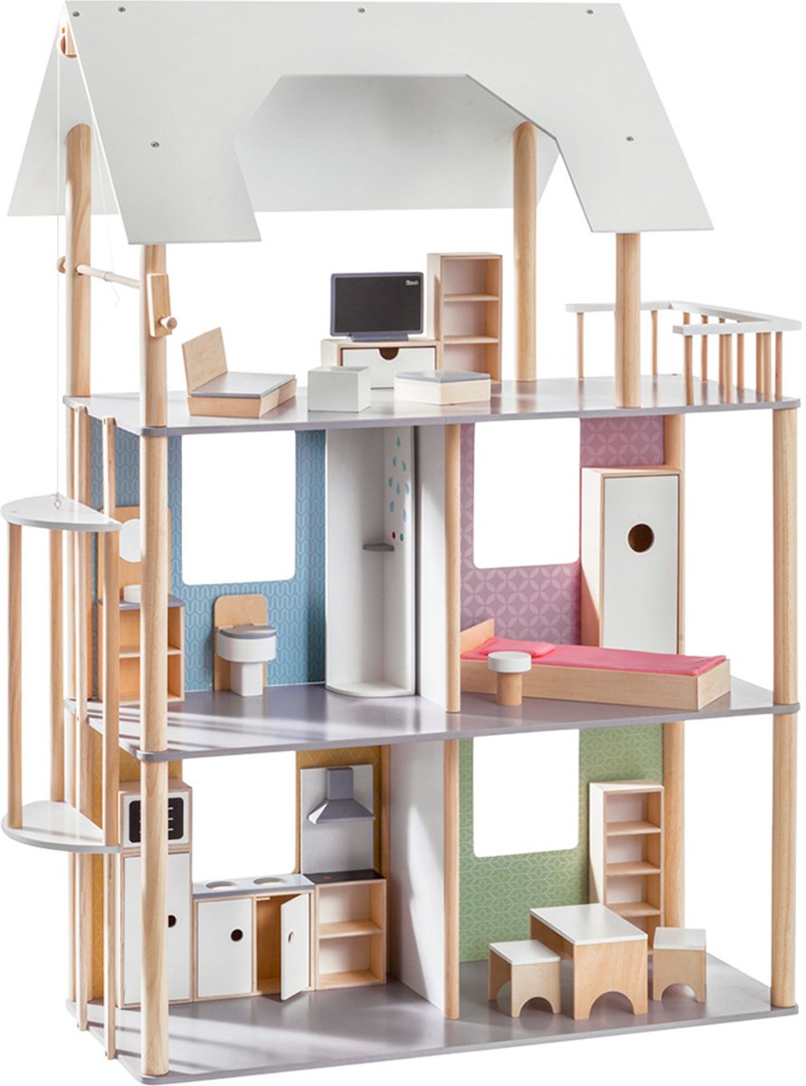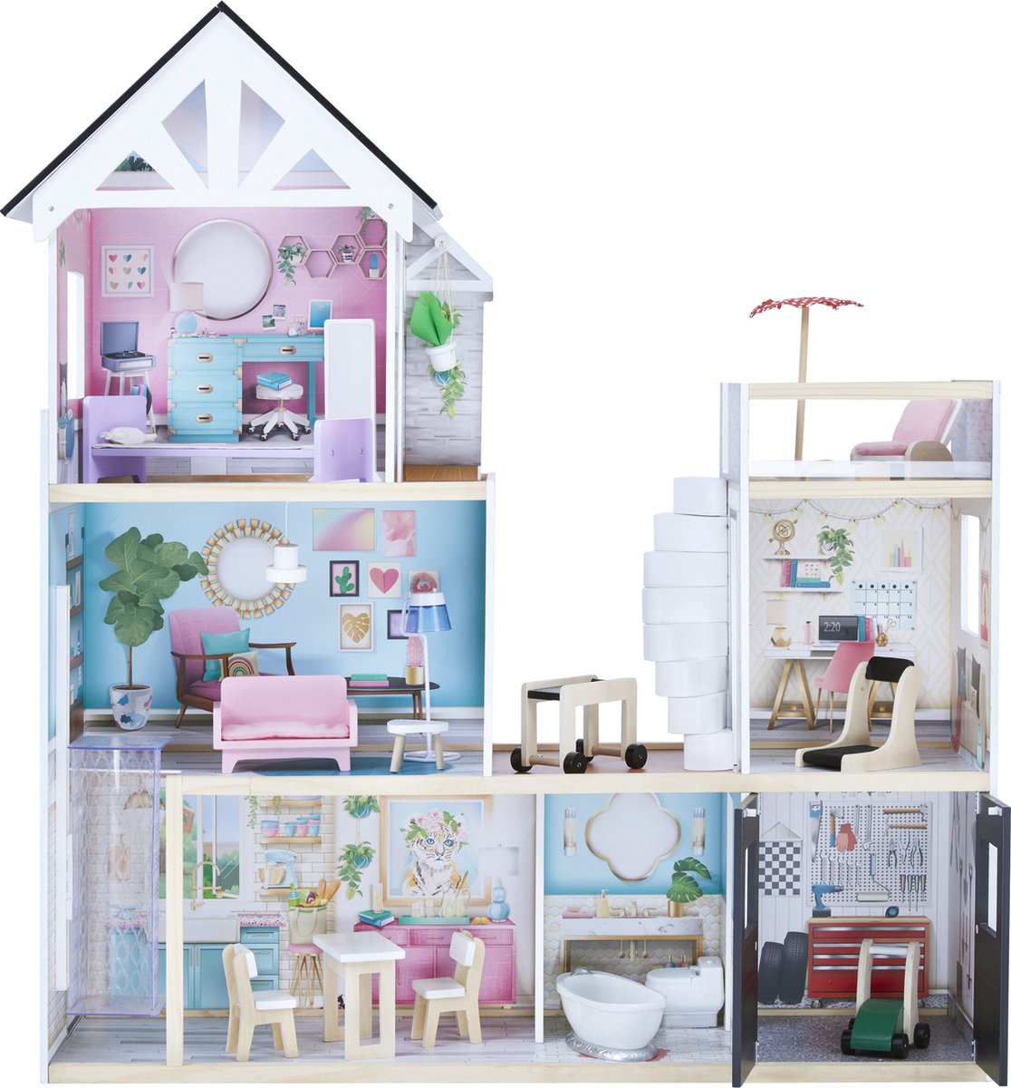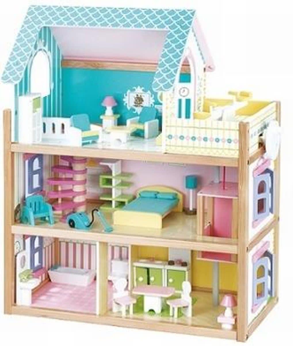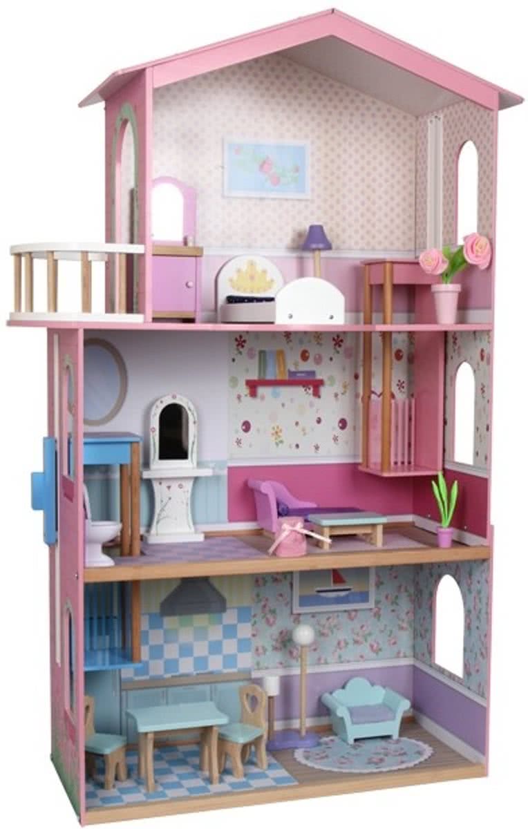Chelsea Vakantiehuis - Houten poppenhuis met 3 verdiepingen en 16 meubelstukken