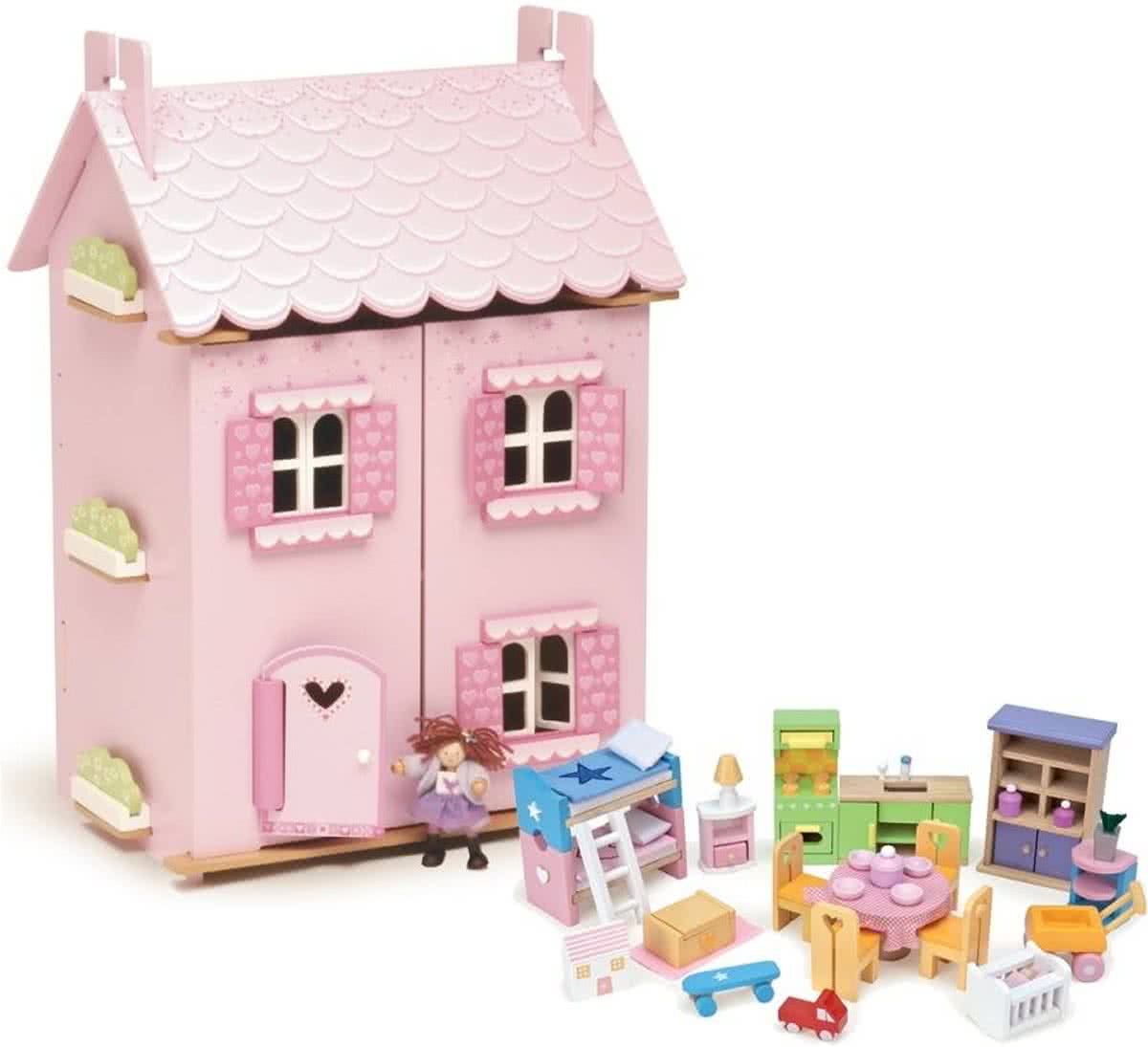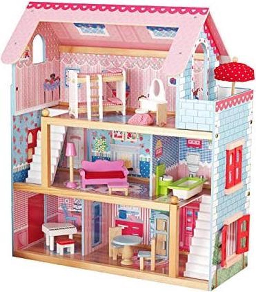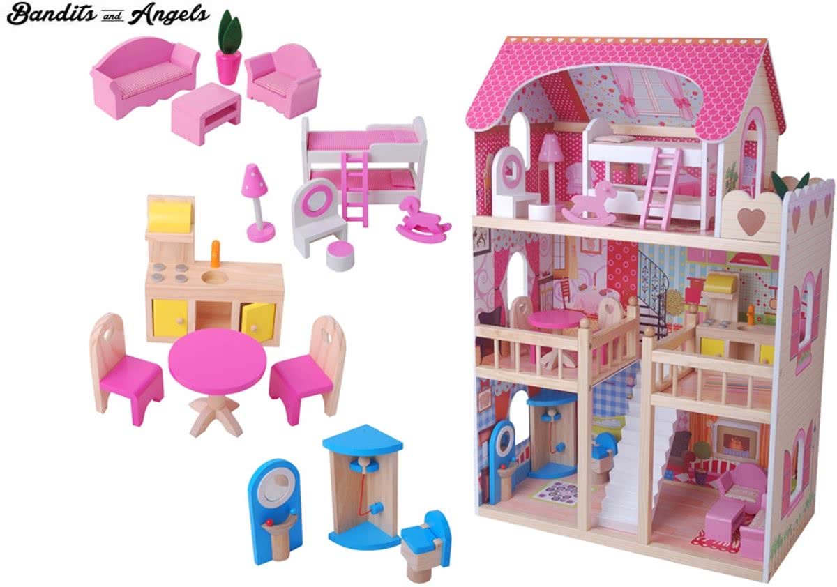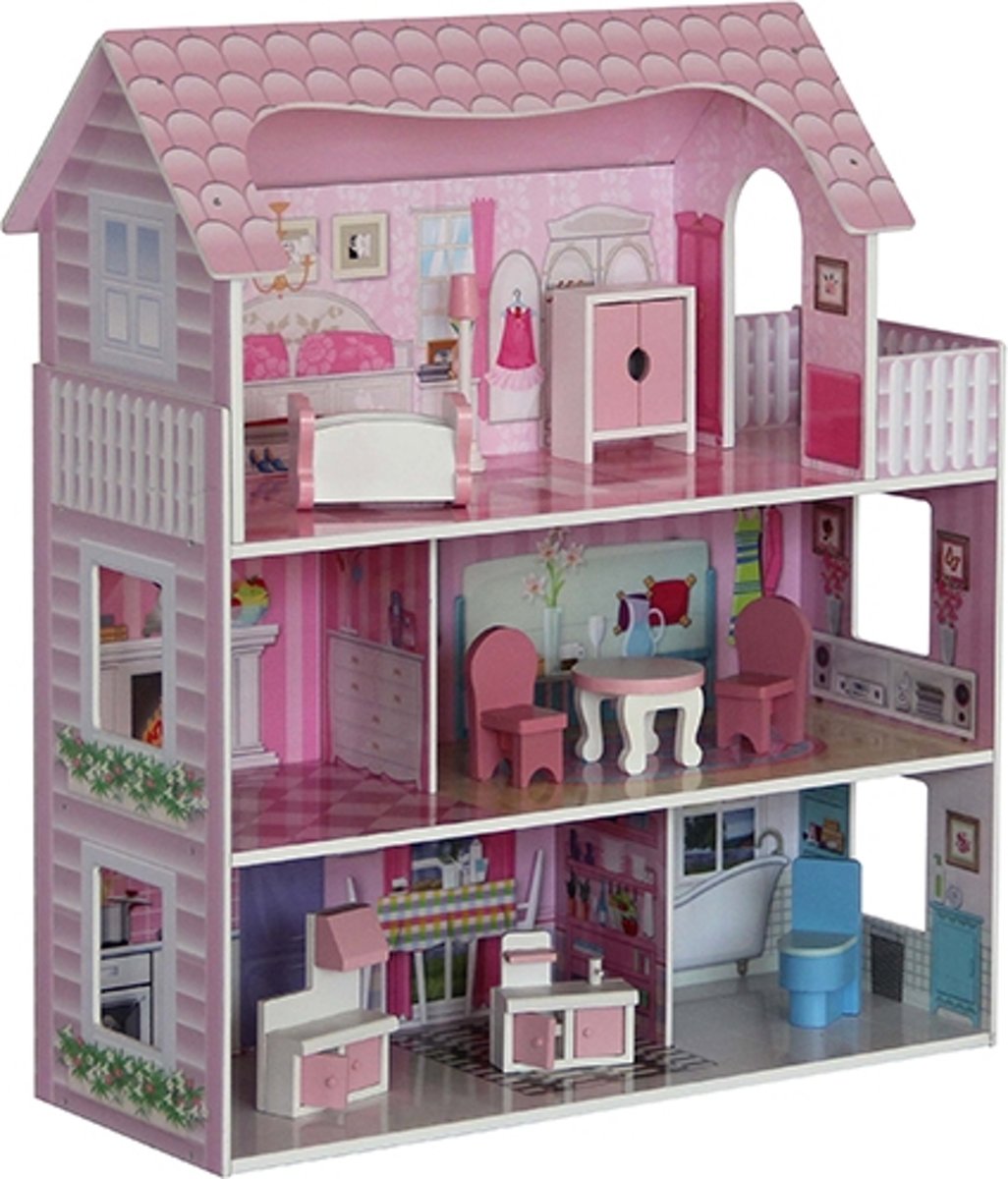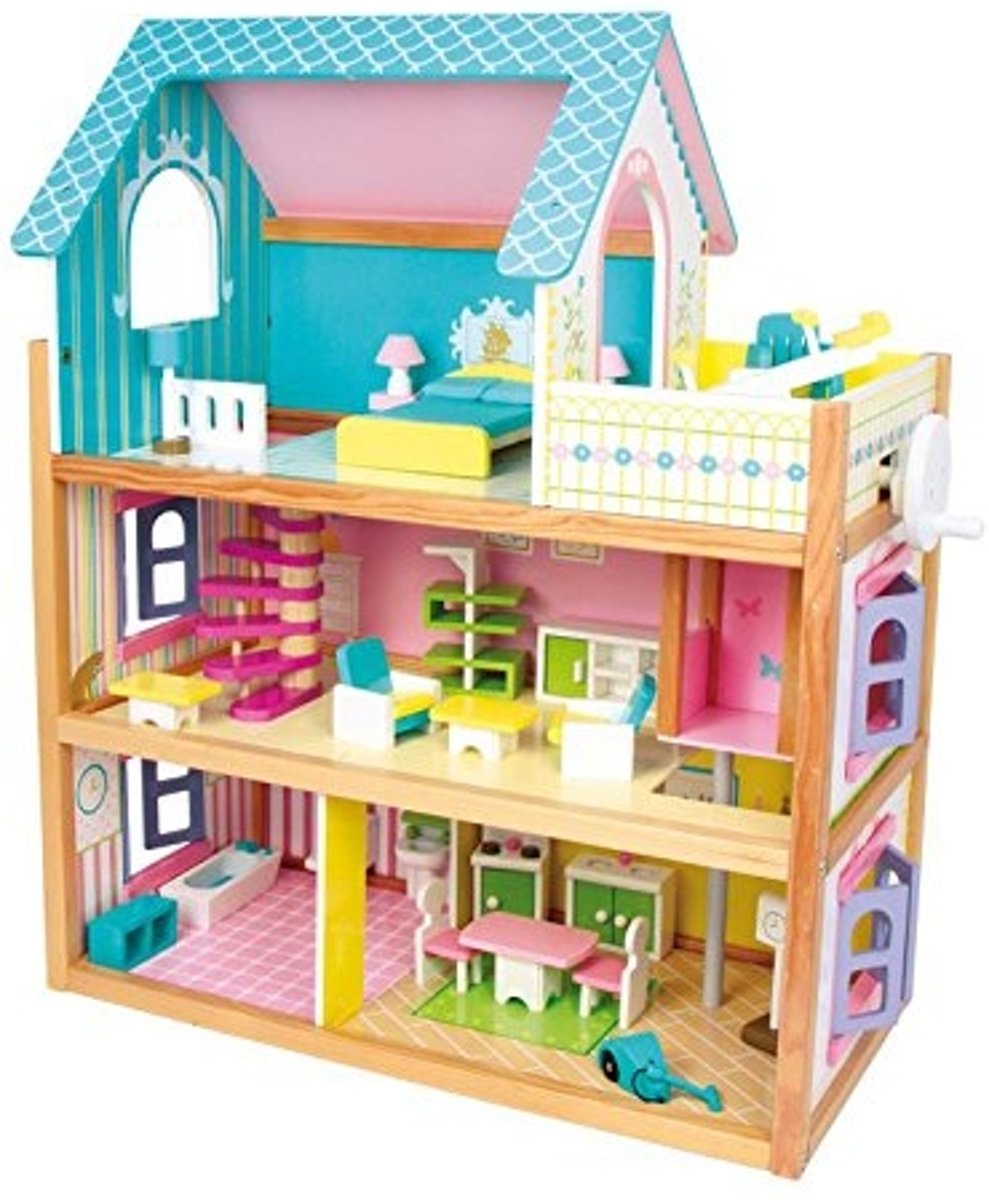 Chelsea Vakantiehuis - Houten poppenhuis met 3 verdiepingen en 16 meubelstukken