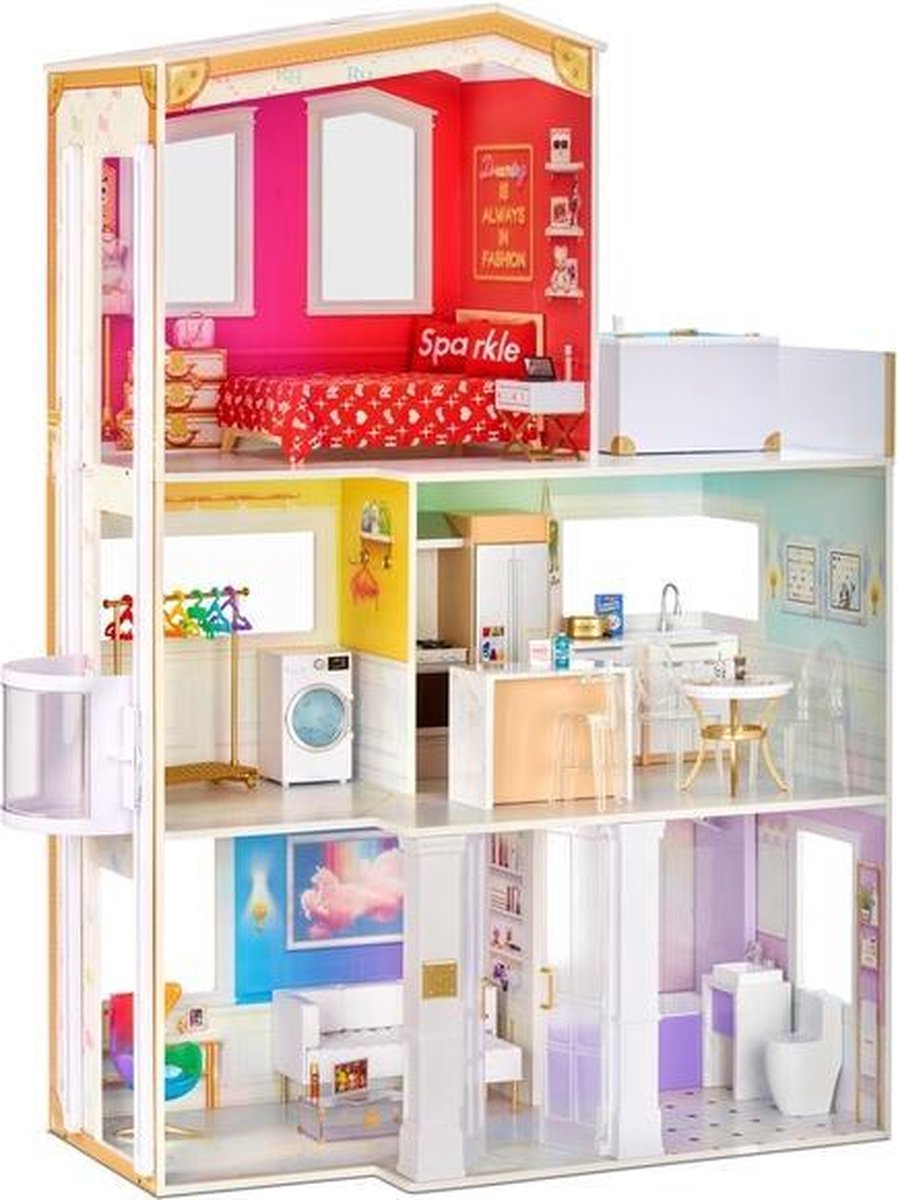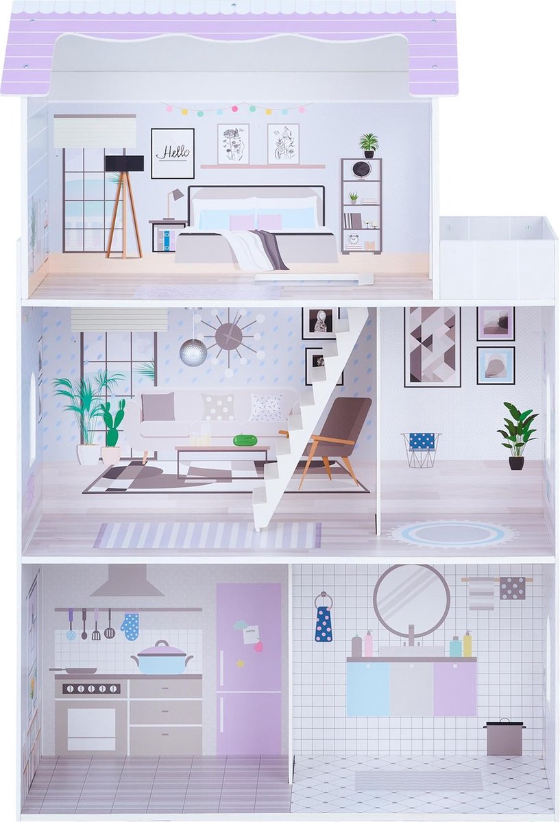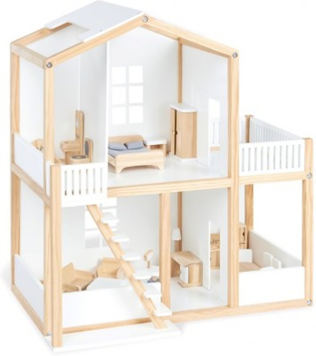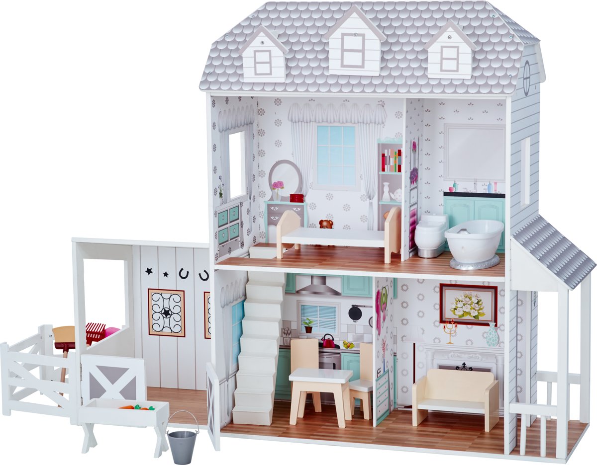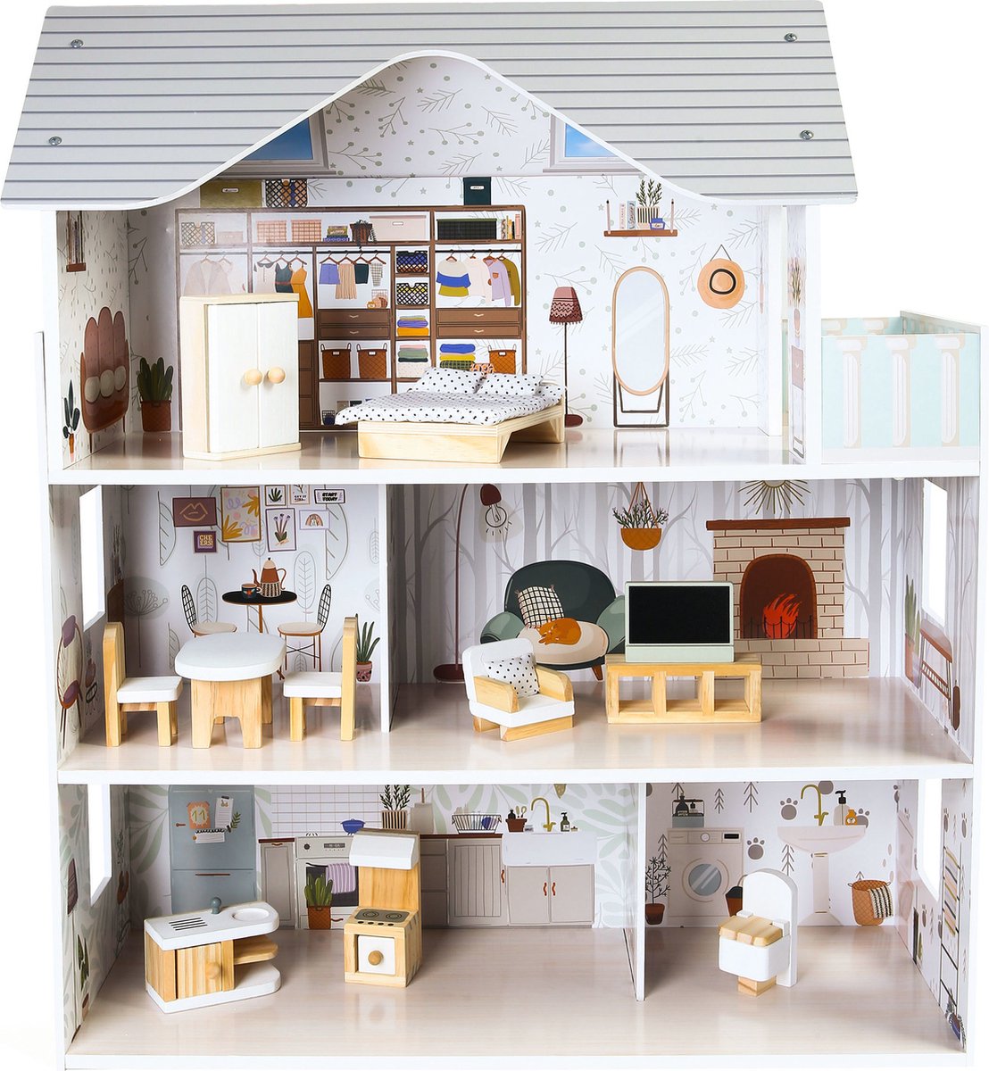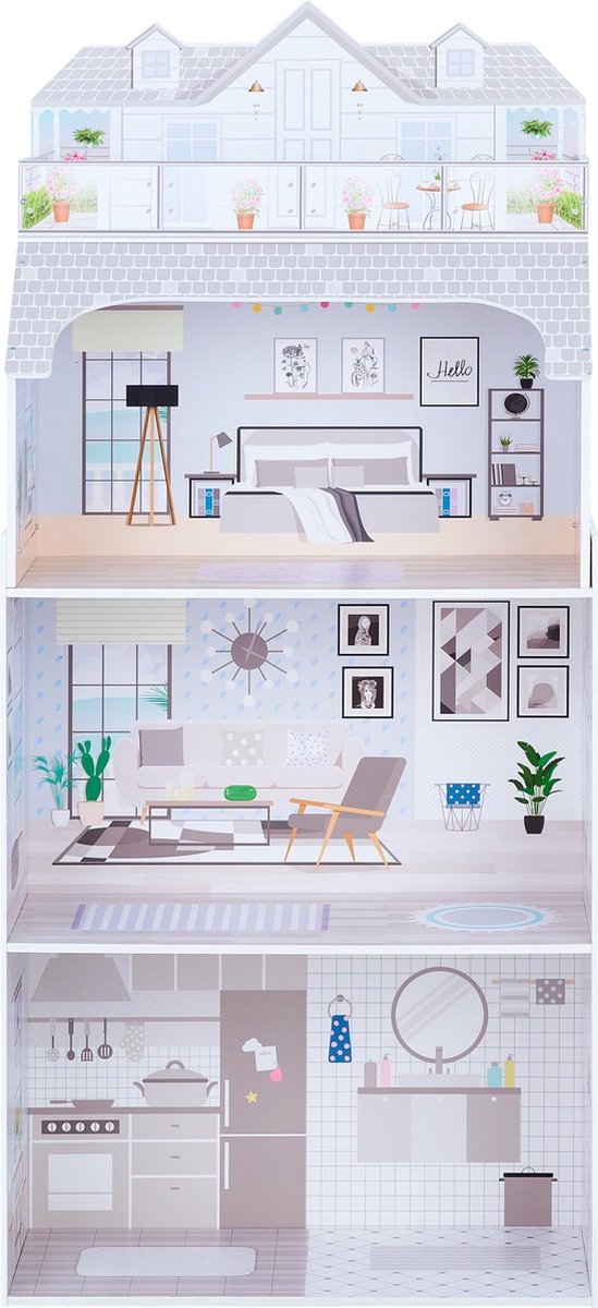 Chelsea Vakantiehuis - Houten poppenhuis met 3 verdiepingen en 16 meubelstukken