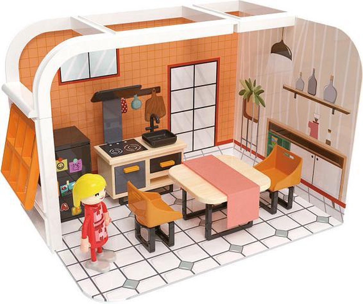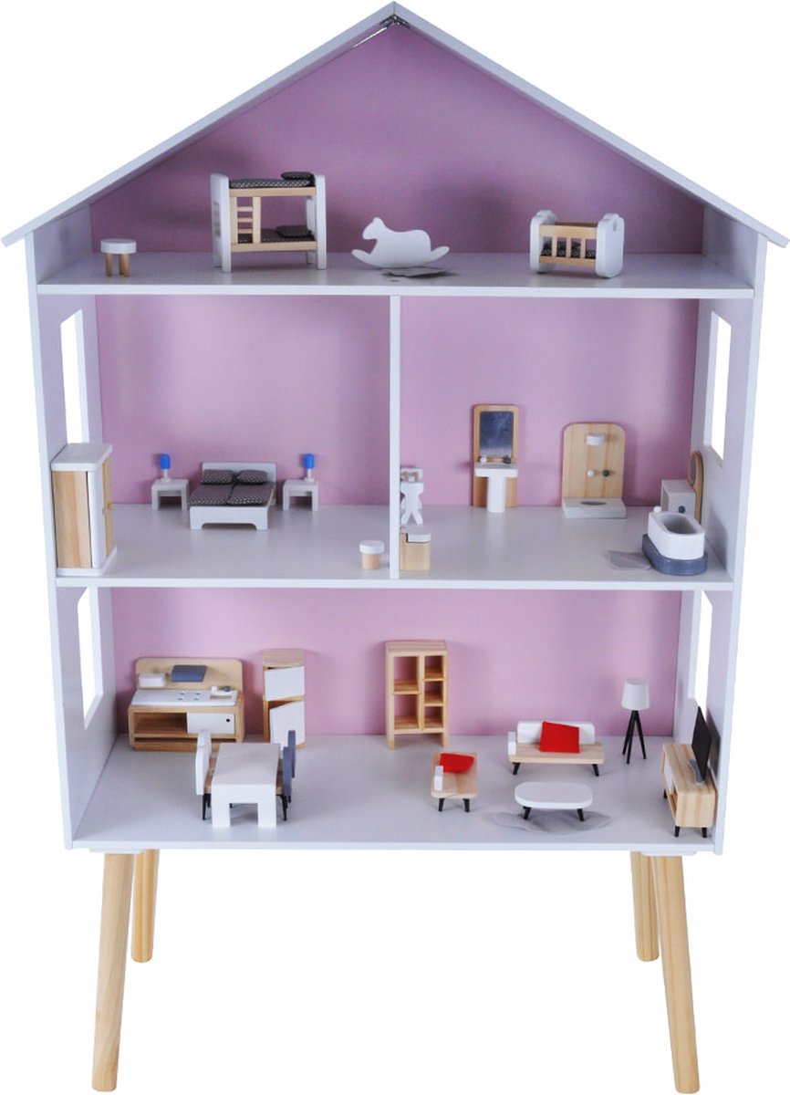 ® Lynn – Hout - incl. 25 Meubels & Poppen - 85 cm - Grachtenpand Design - Off white